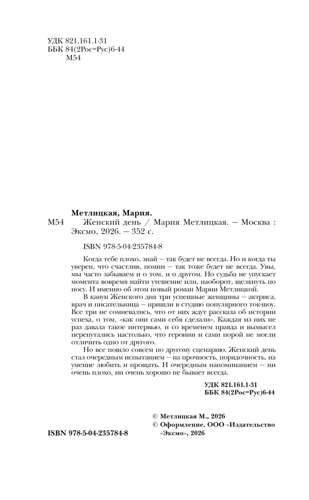 | Серия | Женские судьбы. Уютная проза Марии Метлицкой |