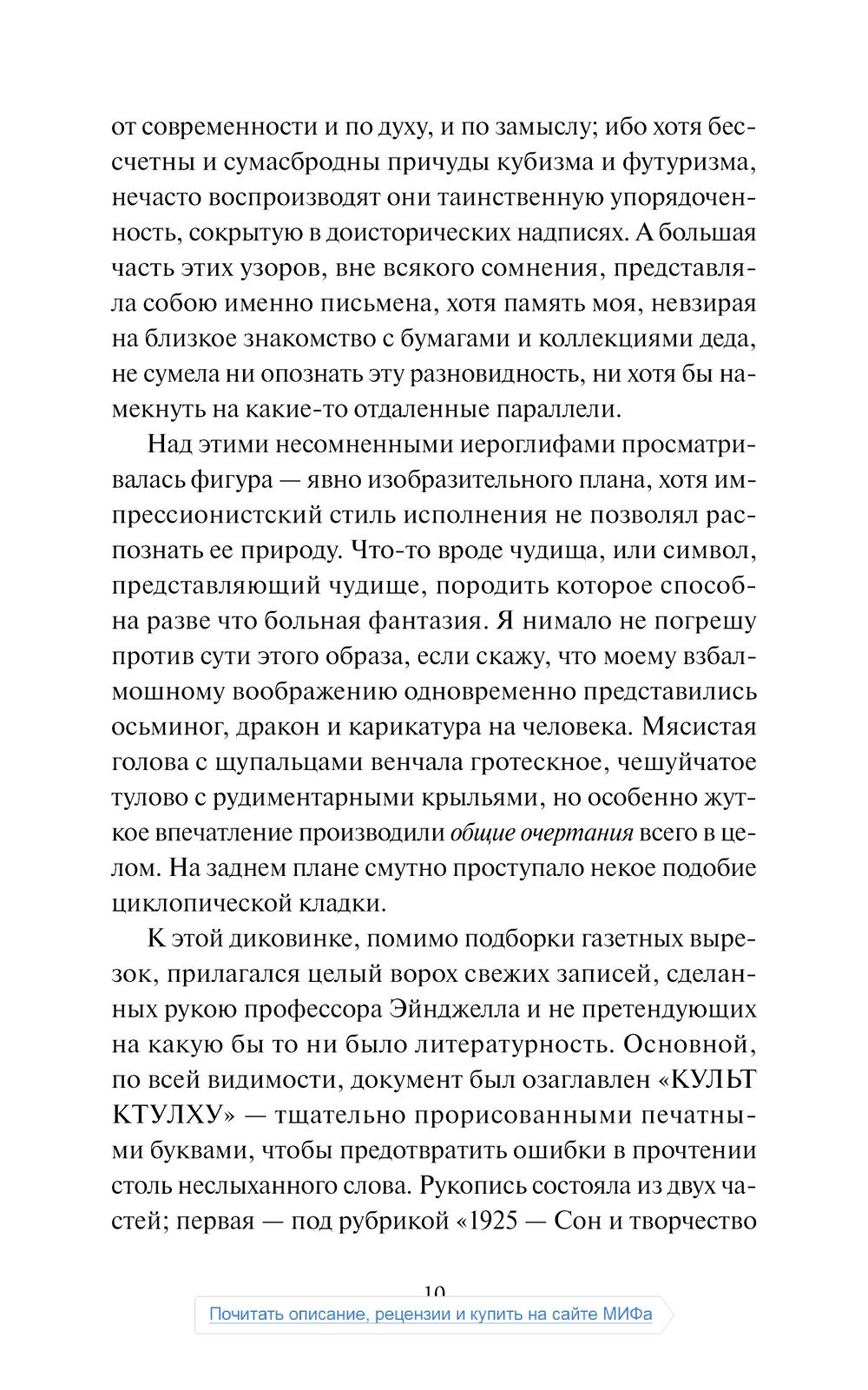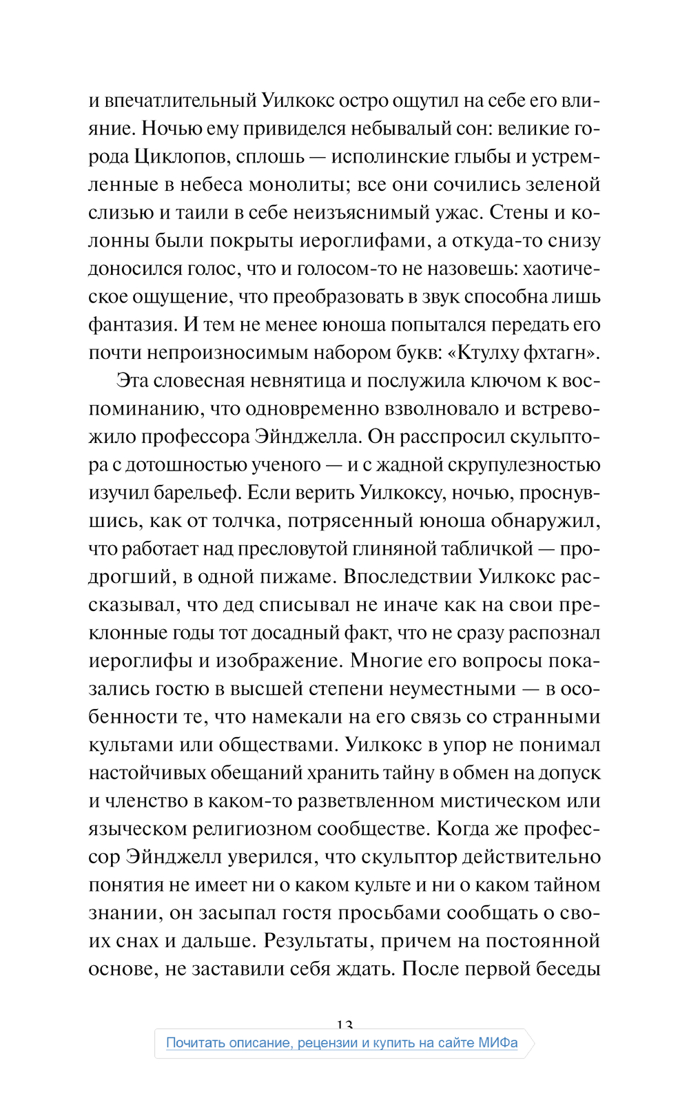 "Зов Ктулху" – визитная карточка жанра космического ужаса, точка отсчета бездонной и полной кошмаров вселенной Лавкрафта. Считается, что идея рассказа пришла автору во сне. Он о том – что есть вещи, о которых лучше не знать, потому что от них нет спасения.