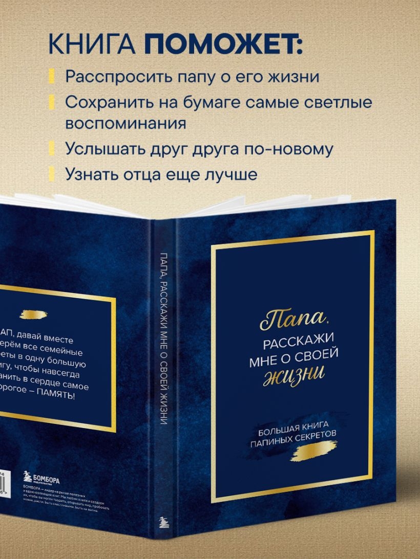 "Папа, расскажи мне о своей жизни" – это не просто книга, а бережно созданное пространство для разговора по душам с папой. Это возможность услышать историю жизни самого близкого человека в мельчайших деталях и сохранить ее навсегда.
