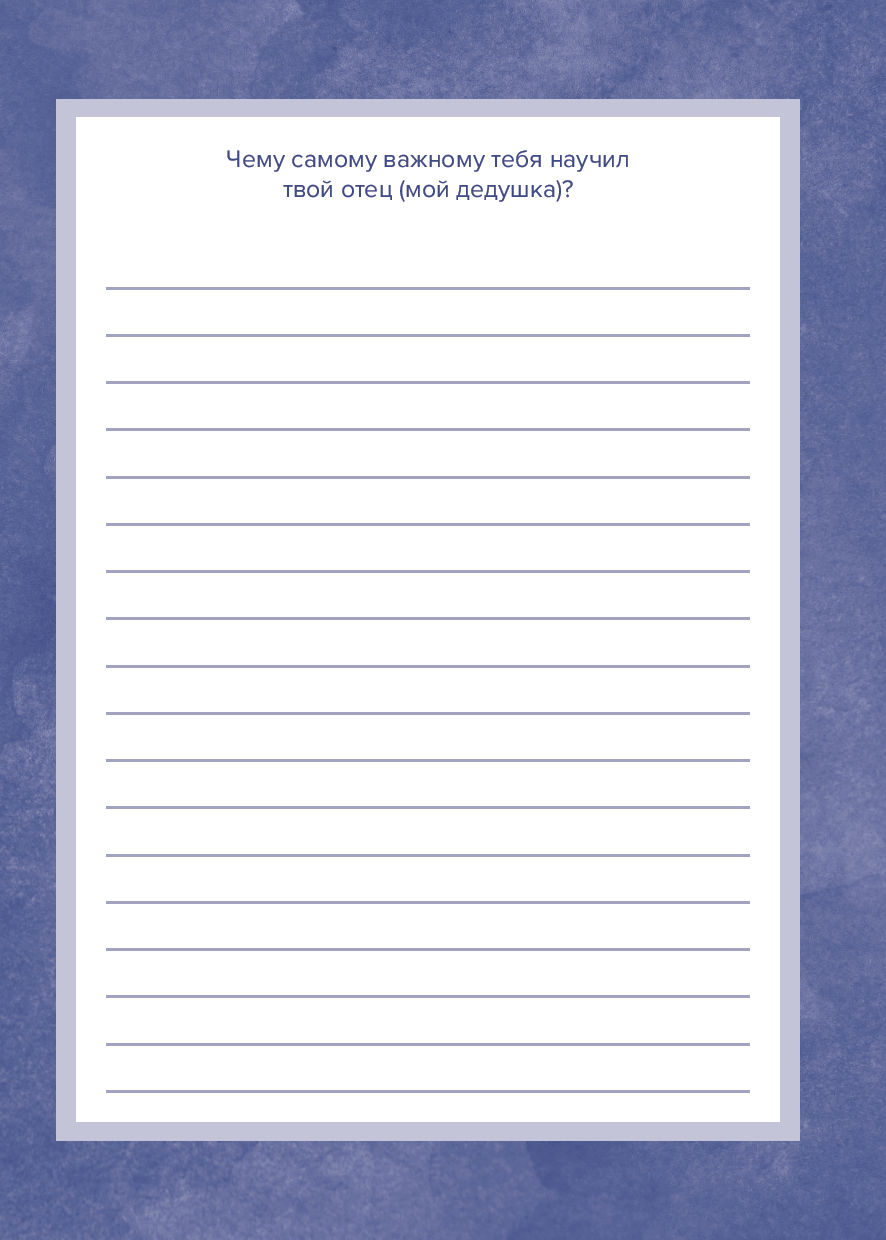 Эта книга – ваш шанс сохранить голос, мысли и чувства папы. Пусть его уникальная история будет рассказана, услышана и сохранена для всех будущих поколений! И это самый ценный подарок, который только можно представить.