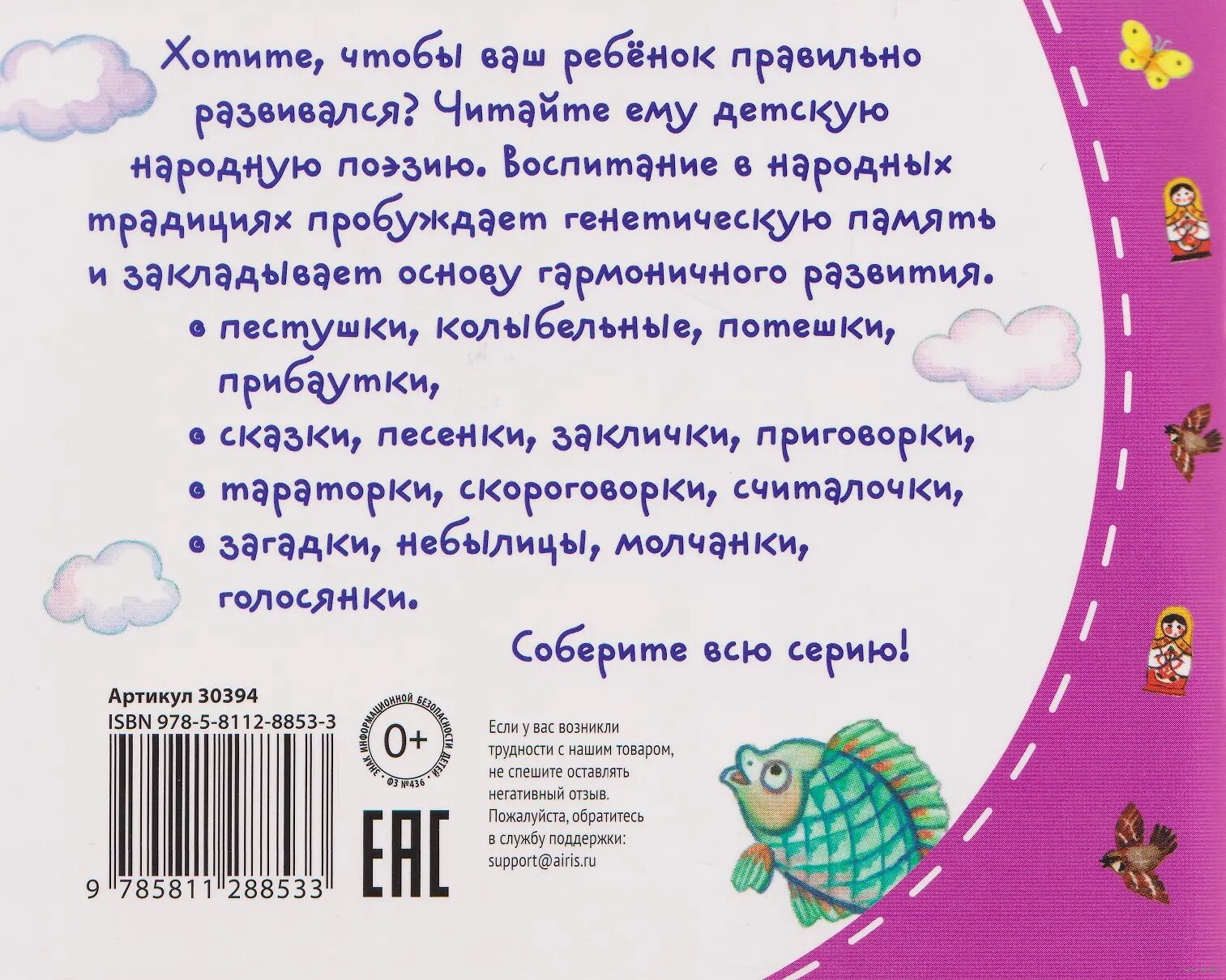 Книжка представляет собой сборник народных сказок-коротушек.Это короткие истории, у которых есть начало, но нет окончания. Начинаются они, как обычно , но, не дойдя до завязки сюжета, внезапно обрываются. "Вот и сказка вся!" – говорит рассказчик. Такие неожиданные повороты всегда нравятся детям и вызывают у них много положительных эмоций.