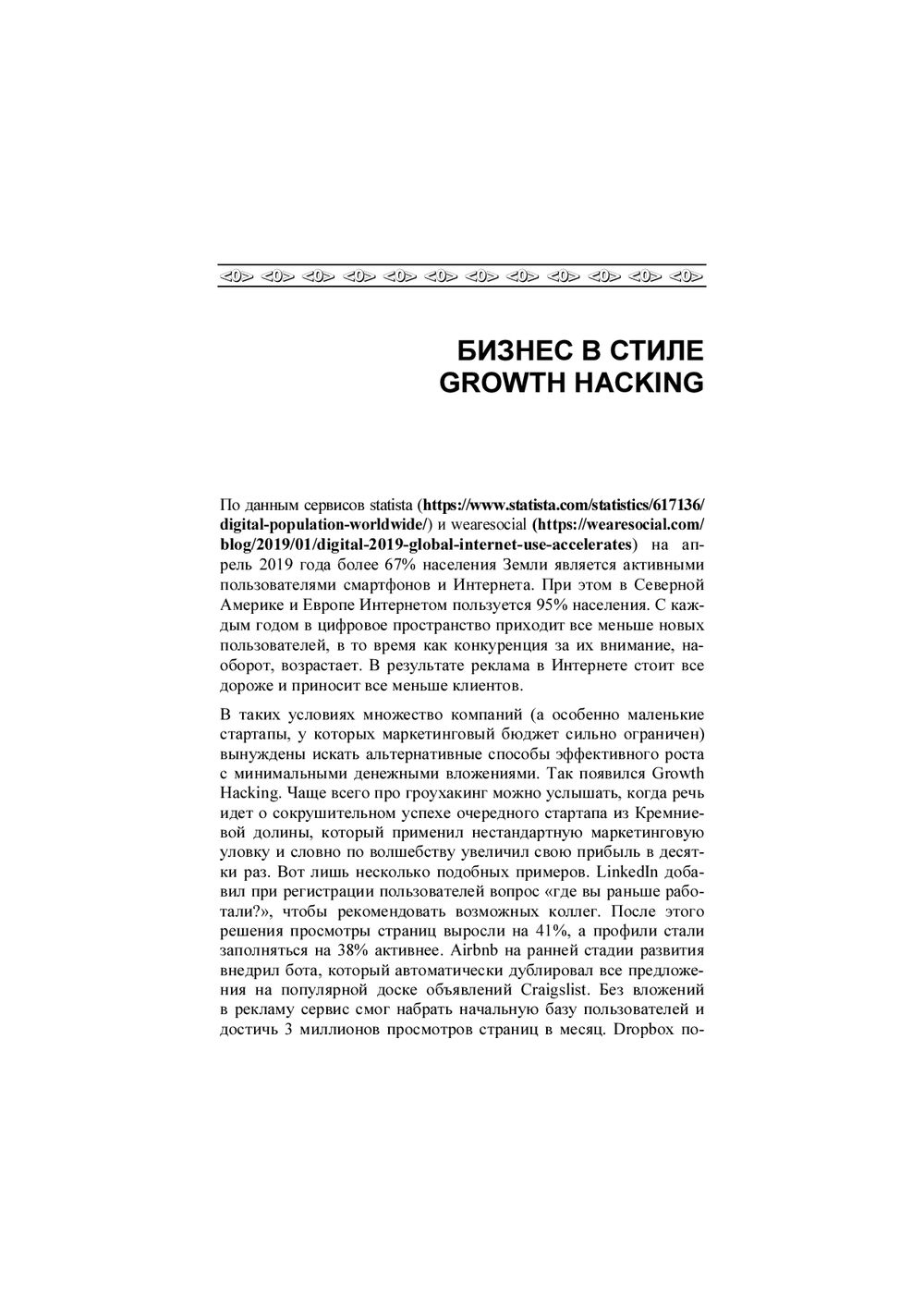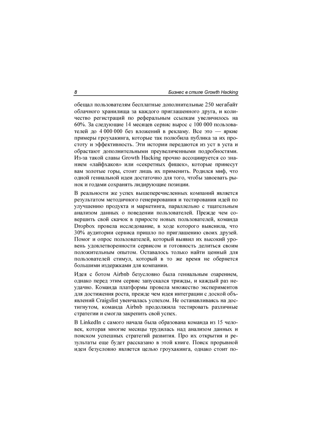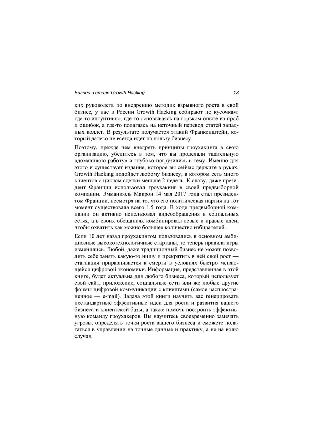 Книга впервые рассказывает на русском языке о наборе маркетинговых инструментов, объединенных общей концепцией под названием Growth Hacking. Эти инструменты активно используют начинающие технологические стартапы в Кремниевой долине, а также многие успешные американские и российские IT-корпорации. Подробно рассмотрены используемые в концепции Growth Hacking принципы сплит-тестирования, прототипирования, сбора веб-аналитики, автоматизации бизнес-процессов при помощи различных сервисов. Для лучшего понимания теории в каждой главе приведены примеры частых ошибок молодых стартапов и успешные кейсы состоявшихся компаний.