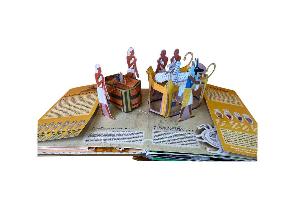 Захватывающая энциклопедия для юных исследователей Древнего Египта! В книге читателя ждут гигантские объёмные модели мумий, гробниц, панорамные виды древнего города, раскрывающиеся элементы и многое другое, превращающие книгу в увлекательное 3D-путешествие. Ребёнок узнает самые невероятные факты о жизни прошедшей эпохи, а уникальные pop-up фигурки и интерактивные элементы сделают чтение очень весёлым!