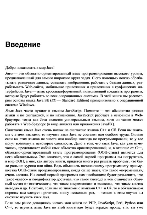 Книга содержит большое количество практических примеров, помогающих начать программировать на языке Java самостоятельно. Весь материал тщательно подобран, хорошо структурирован и компактно изложен, что позволяет использовать книгу как удобный справочник. Во втором издании добавлена глава по Java 11 и описано большинство нововведений: модули, интерактивная оболочка JShell, инструкция var и др.