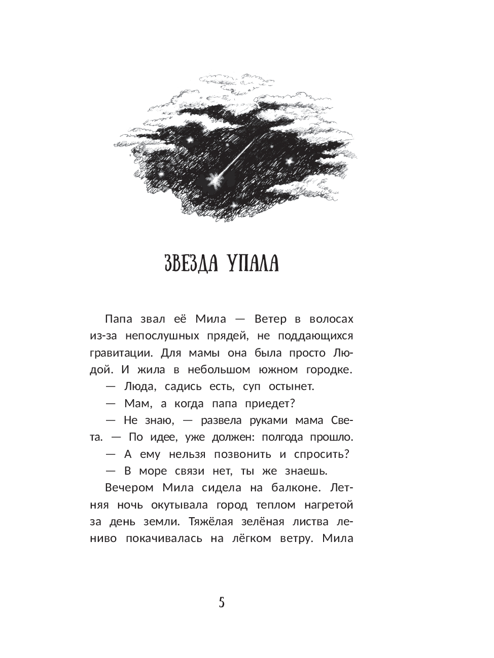 Повесть о девочке Миле, которую папа прозвал "Ветер в волосах" за непослушные светлые пряди. Однажды звезда прямо с неба падает на её балкон и запускает череду невероятных приключений. Не только Мила, но и её друг Мишган оказываются в центре загадочных событий. Их ждёт удивительное путешествие, где мистика и волшебство переплетаются с реальностью, навсегда меняя обоих героев. Совместные приключения не только научат дружить, но и заставят повзрослеть, а ещё помогут открыть самые сокровенные тайны семей.