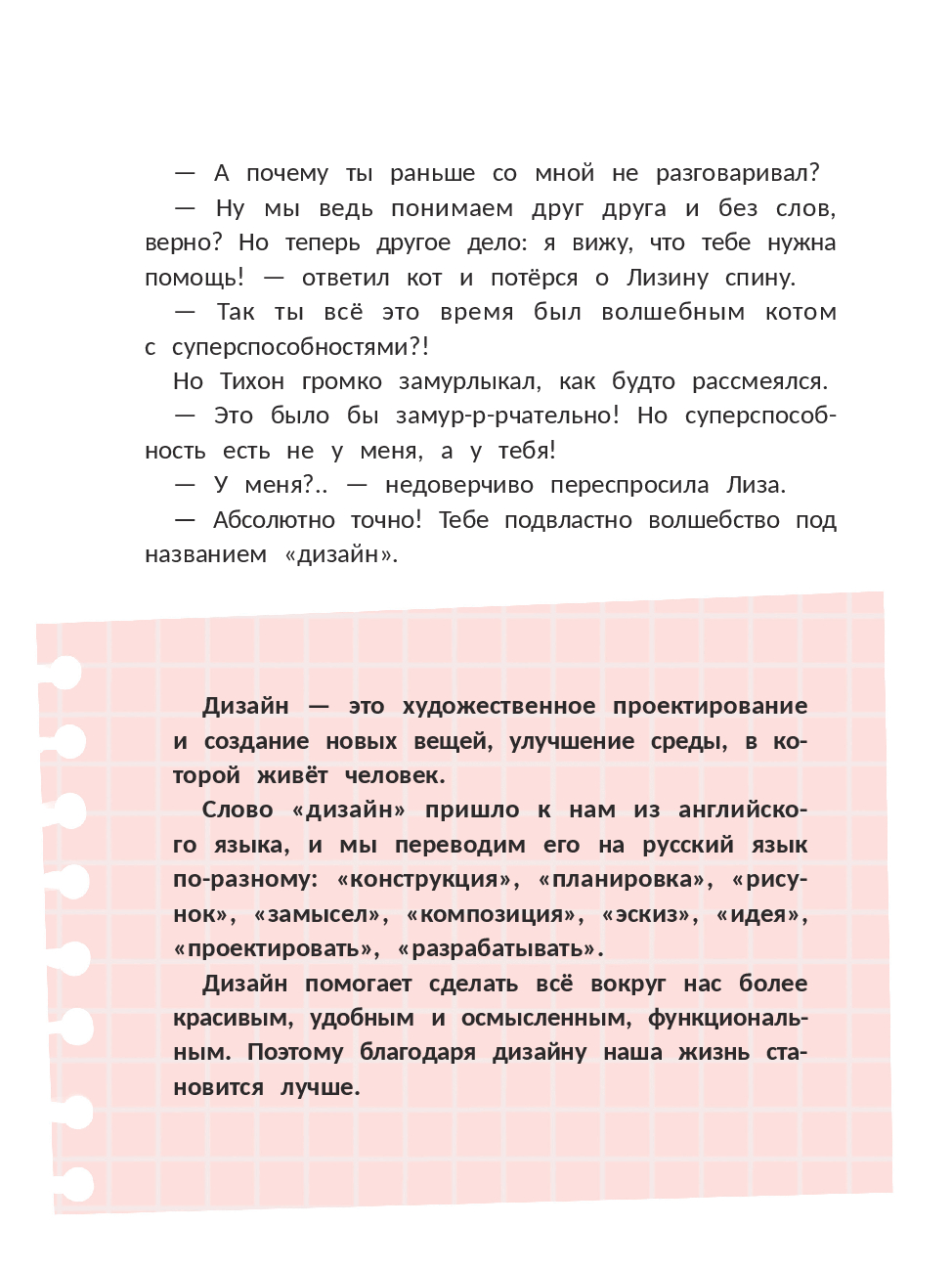 Ну кто еще может похвастаться своим непревзойденным стилем и чувством прекрасного? Конечно, кот! Тишка знает толк в одежде, интерьере... Однако дизайн – это не только красивые вещи на подиуме и дорогая мебель, но и зубная щётка, вывеска на входе в парикмахерскую и даже приложение в твоём телефоне! Тишка поделится секретами со своей хозяйкой Лизой и со всеми, кто мечтает окунуться в дизайн и научиться преображать мир вокруг себя.