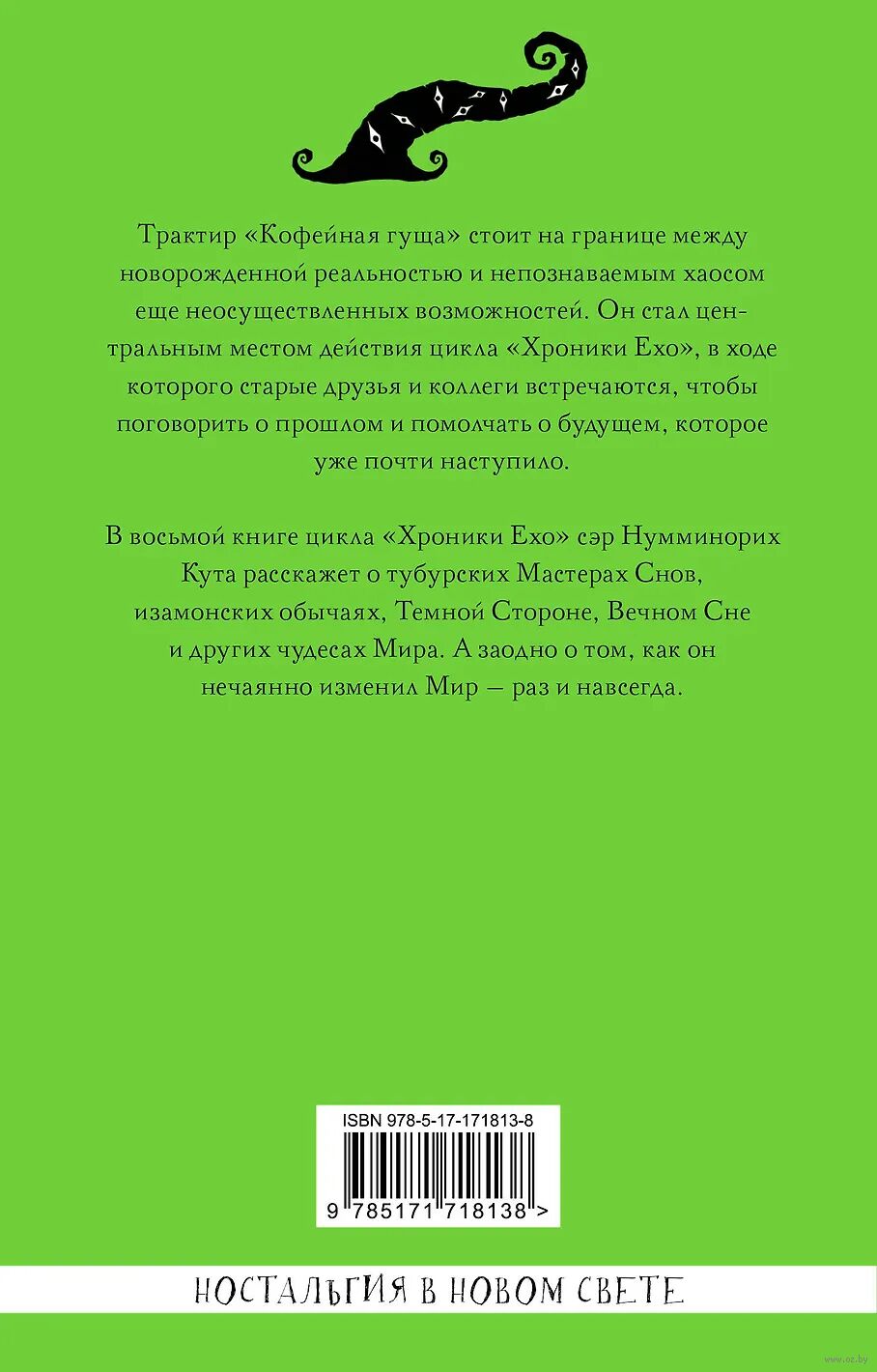 Трактир "Кофейная гуща" стоит на границе между новорожденной реальностью и непознаваемым хаосом еще не осуществленных возможностей. Он стал центральным местом действия цикла "Хроники Ехо", в ходе которого старые друзья и коллеги встречаются, чтобы поговорить о прошлом и помолчать о будущем, которое уже почти наступило.