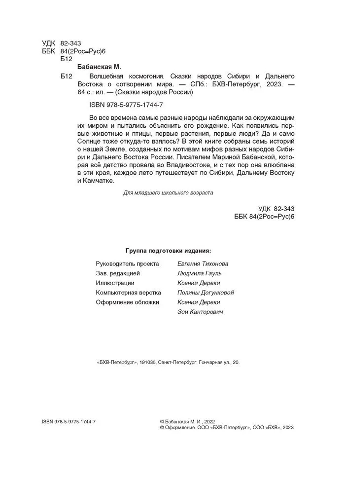 Во все времена самые разные народы наблюдали за окружающим их миром и пытались объяснить его рождение. Как появились первые животные и птицы, первые растения, первые люди? Да и само Солнце тоже откуда-то взялось? В этой книге собраны семь историй о нашей Земле, созданных по мотивам мифов разных народов Сибири и Дальнего Востока России писателем Мариной Бабанской, которая все детство провела во Владивостоке и с тех пор влюблена в эти края.
