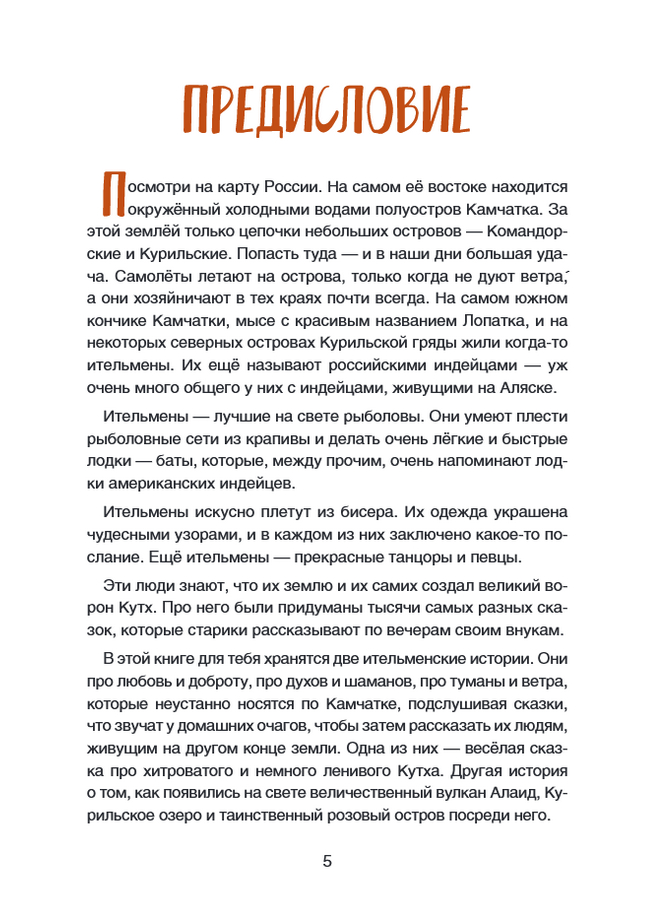 Сказки познакомят юных читателей с фольклором ительменов, российских индейцев, как их ещё называют, живших когда-то на юге полуострова Камчатка и Курильских островах. Сказки поведают о хитром вороне Кутхе, создавшем Землю, появлении вулкана Алаид, Курильского озера и таинственного розового острова посреди него.