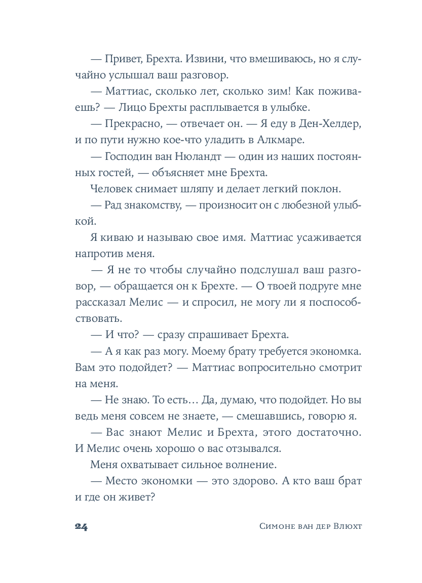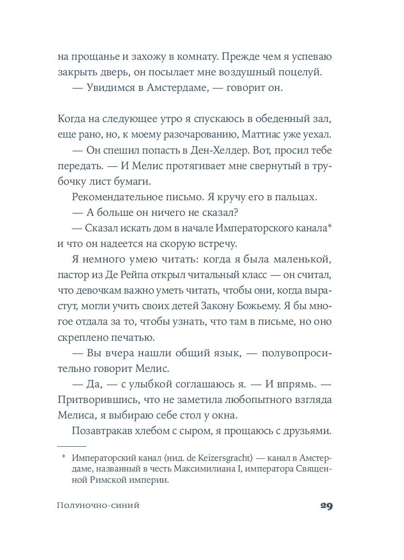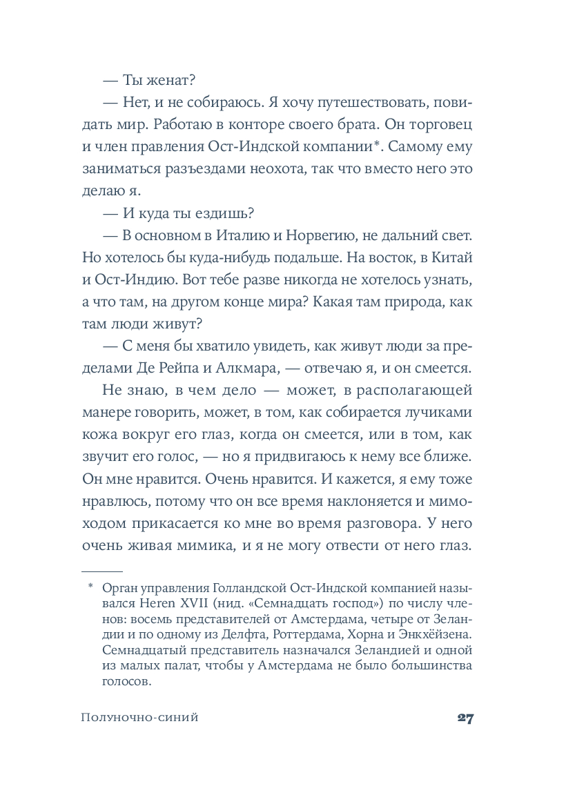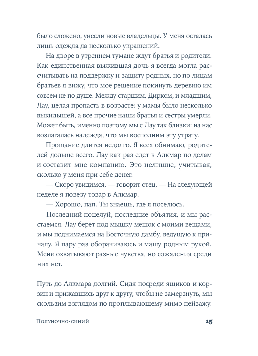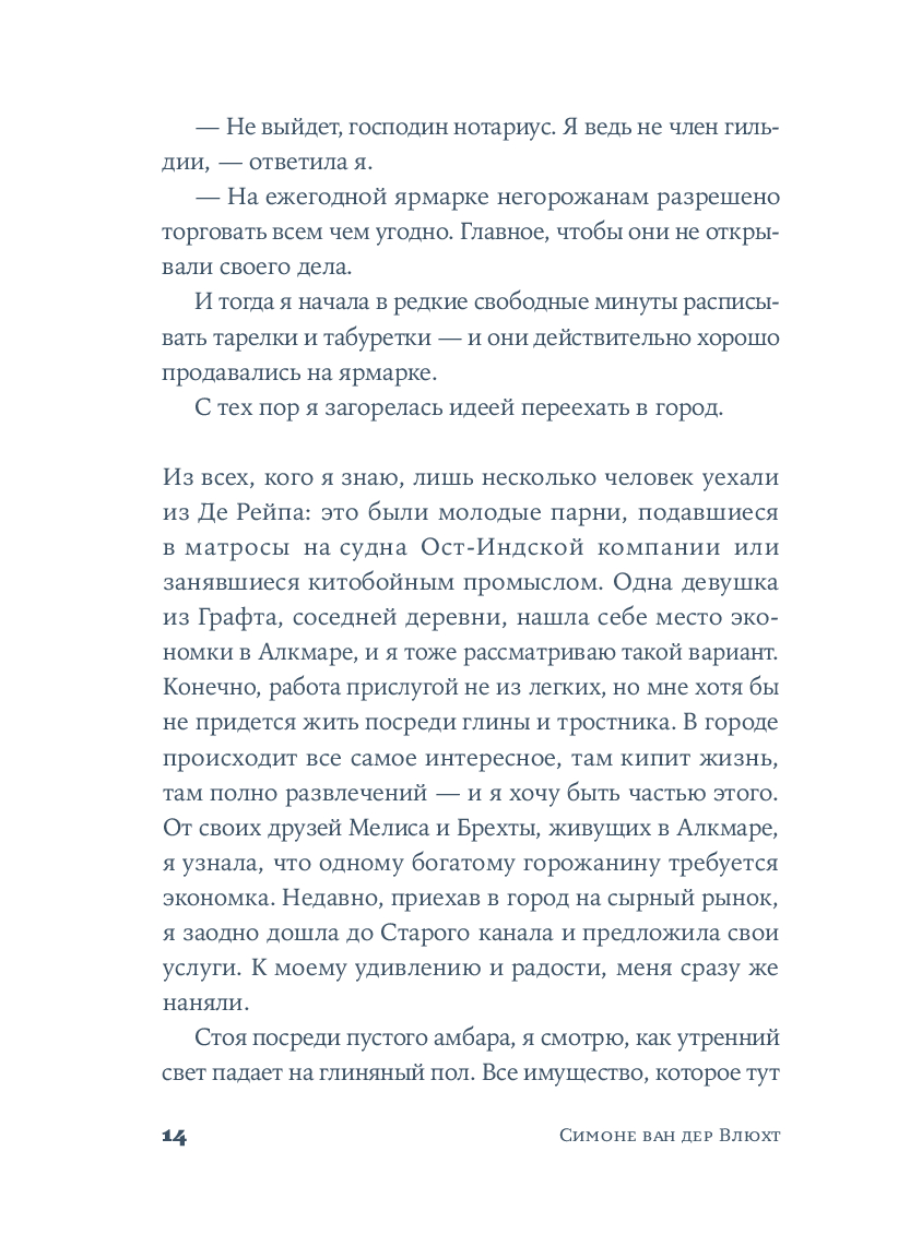 Среди узких мощеных улиц и живописных каналов, в эпоху Рембрандта и Вермеера разворачивается захватывающая история одаренной художницы. Катрейн теряет и вновь обретает свой голос, учится верить людям и рисует сине-белый мир, в котором чудо становится возможным.