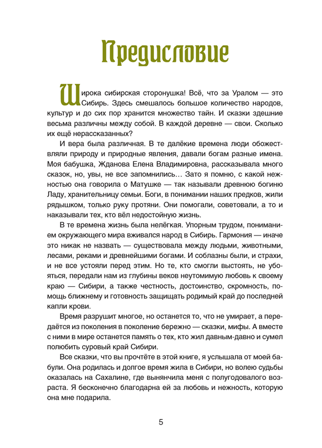 Сибирь широка, здесь смешалось большое количество народов, культур и до сих пор хранится множество тайн. И сказки здешние разнообразны. В каждой деревне – свои. Все, вошедшие в эту книгу сказки, как и в первый сборник "Сказки сибирских деревень", были услышаны автором-составителем от ее бабушки Елены Владимировны Ждановой, родившейся в 1906 году в Сибири и прожившей там жизнь.
