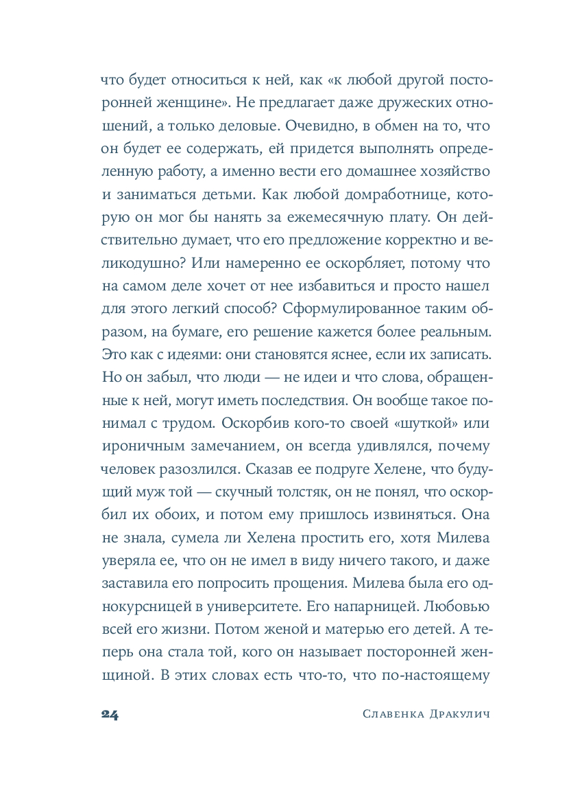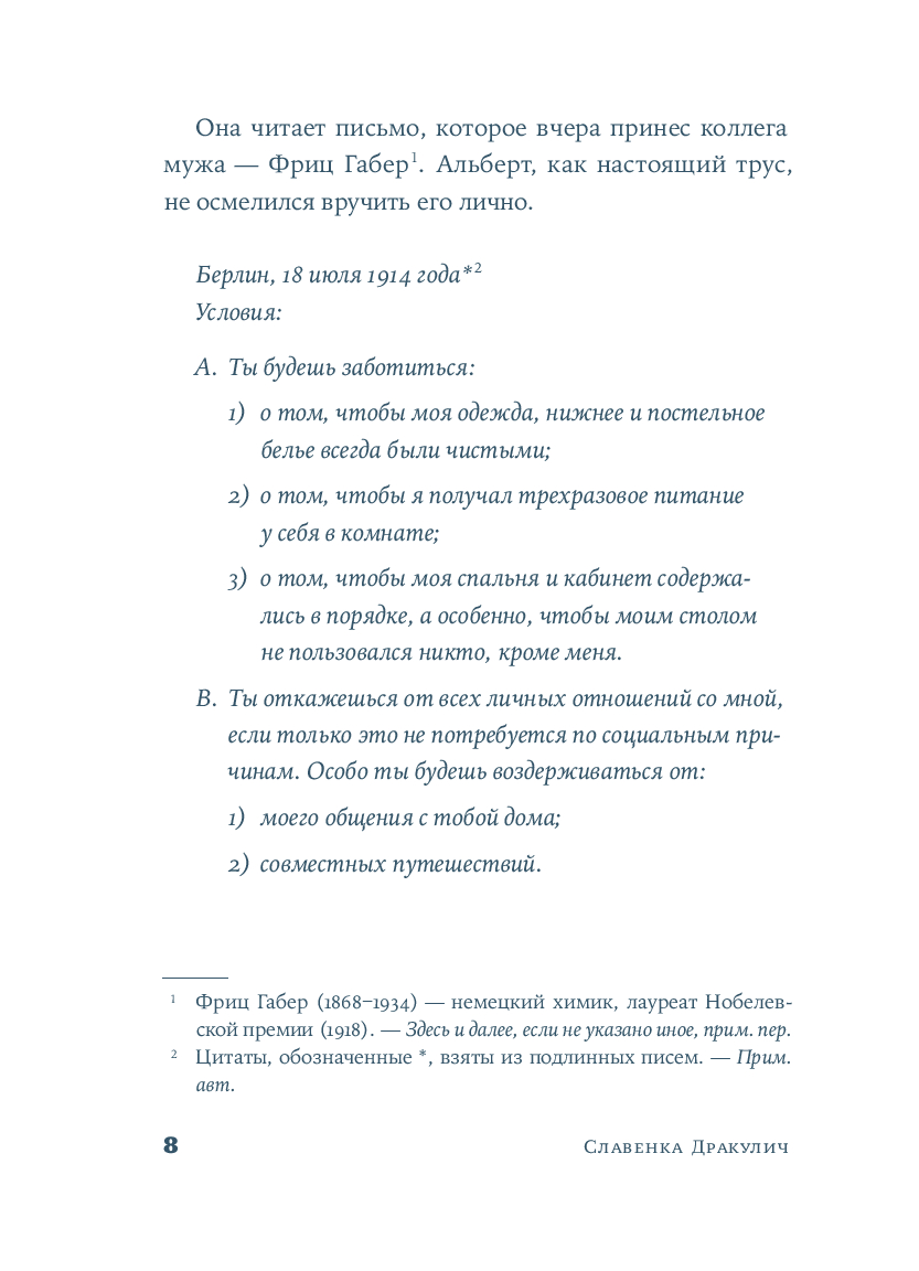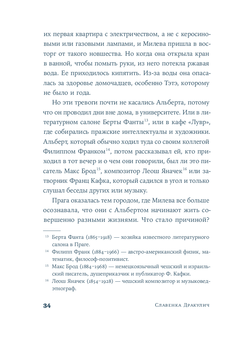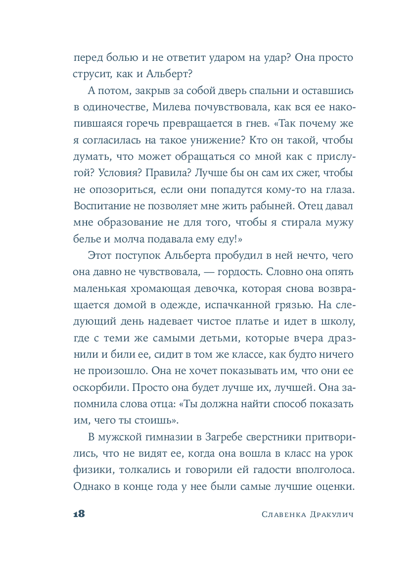Хорватская писательница и журналистка Славенка Дракулич рассказывает о женщине, которой история присудила остаться в тени знаменитого мужчины. Основанный на фактах и подлинных письмах, роман проливает свет на личность и жизнь человека, изменившего представления о пространстве и времени. Но в первую очередь автор дает слово той, которая любила, поддерживала, терпела и боролась – и так легко была предана забвению.
