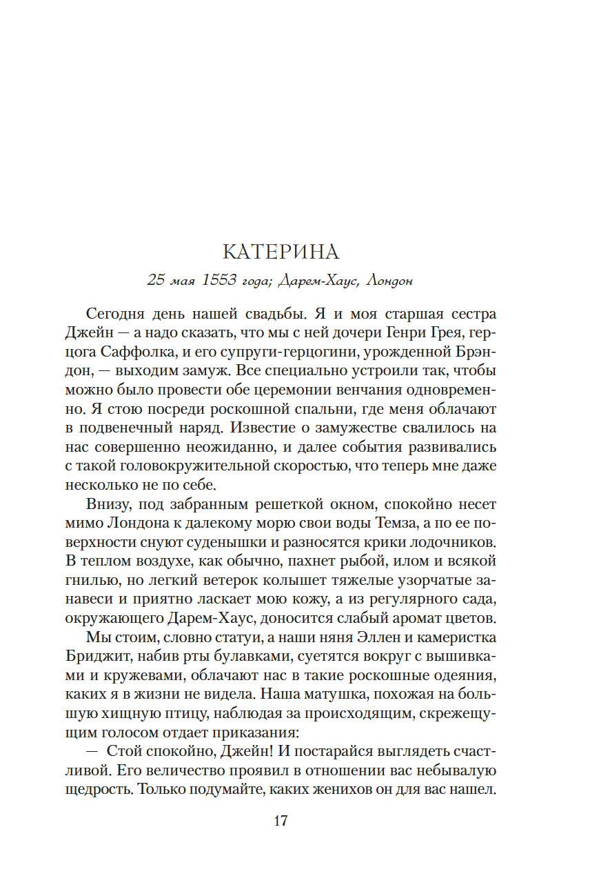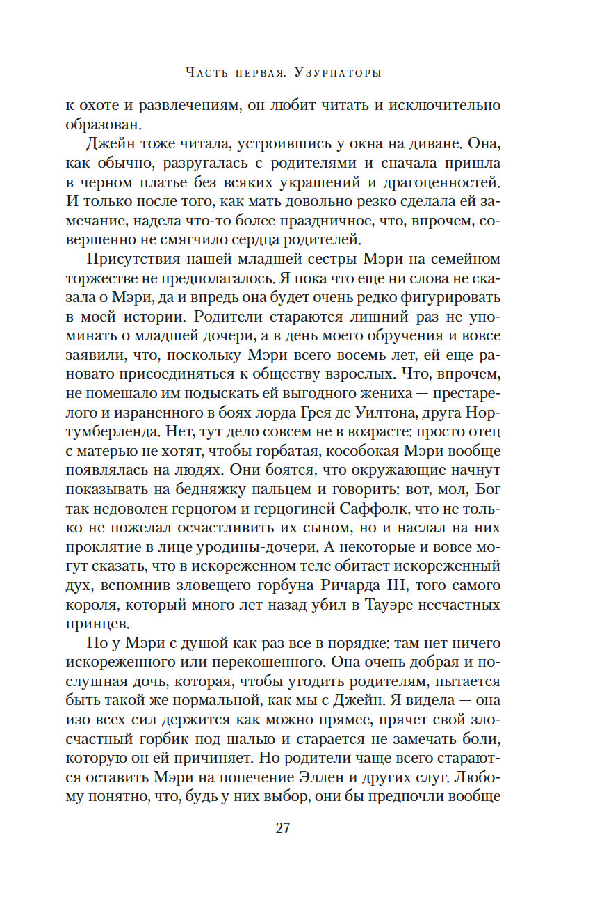 Юная Катерина Грей – младшая сестра Джейн, казненной королевы, правившей Англией всего девять дней. Девушка ждет от жизни только хорошего: она богата, невероятно красива и страстно влюблена в своего жениха, который также с нетерпением ждет дня их свадьбы. Но вскоре Катерина понимает: кровь Тюдоров, что течет в ее жилах, – самое настоящее проклятие. Она случайно находит дневник Катерины Плантагенет, внебрачной дочери печально известного Ричарда Третьего, и узнает, что ее тезка, жившая за столетие до нее, отчаянно пыталась разгадать одну из самых страшных тайн лондонского Тауэра. Тогда Катерина Грей предпринимает собственное расследование, даже не предполагая, что и ей в скором времени тоже предстоит оказаться за неприступными стенами этой мрачной темницы...