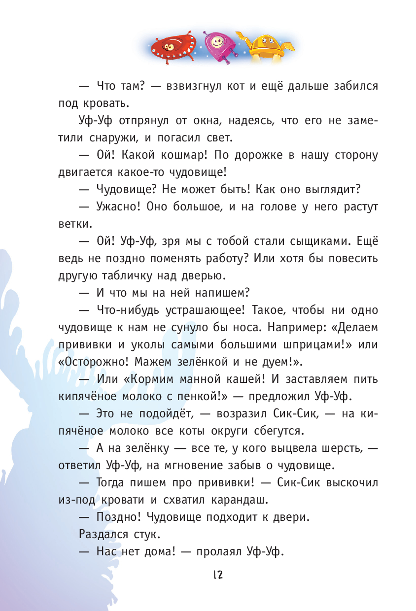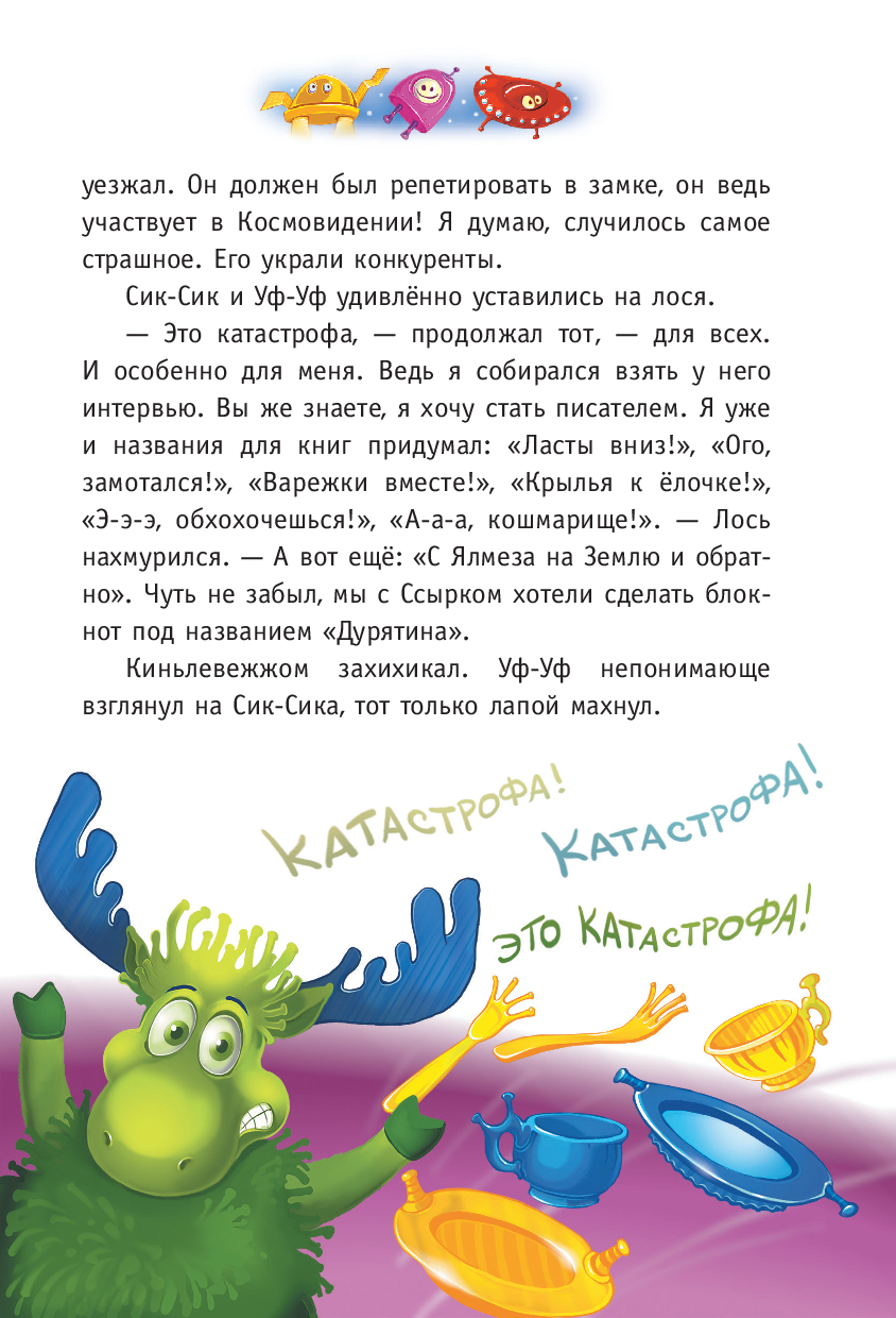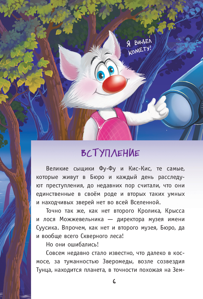 Сенсация! Знаменитые сыщики Кис-Кис и Фу-Фу отправляются в космическое путешествие! Их ждёт удивительная планета, где всё наоборот: небо зелёное, трава фиолетовая, а местные сыщики Уф-Уф и Сик-Сик попали в настоящую беду.
