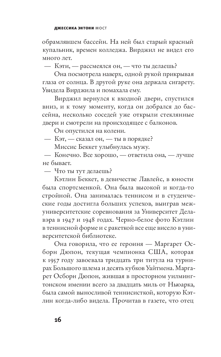 Странности начинаются, когда Кэтлин, некогда подававшая большие надежды теннисистка, а теперь мать и домохозяйка, отказывается идти в церковь. Она достает старый купальник и отправляется в бассейн, из которого до самого вечера отказывается выходить.