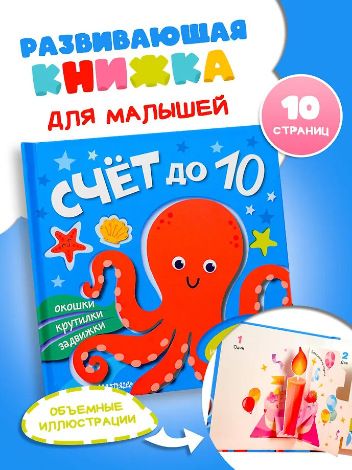 Начинаем: один, два, три! Открывай скорее книгу: на каждой страничке новая цифра и множество окошек, объёмных картинок, задвижек и крутилок!