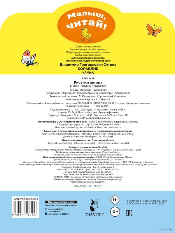 | Изготовитель | Творческое кооперативное объединение «АСТ». 129085, РФ, г. Москва, б-р Звездный, 21, стр. 1 |