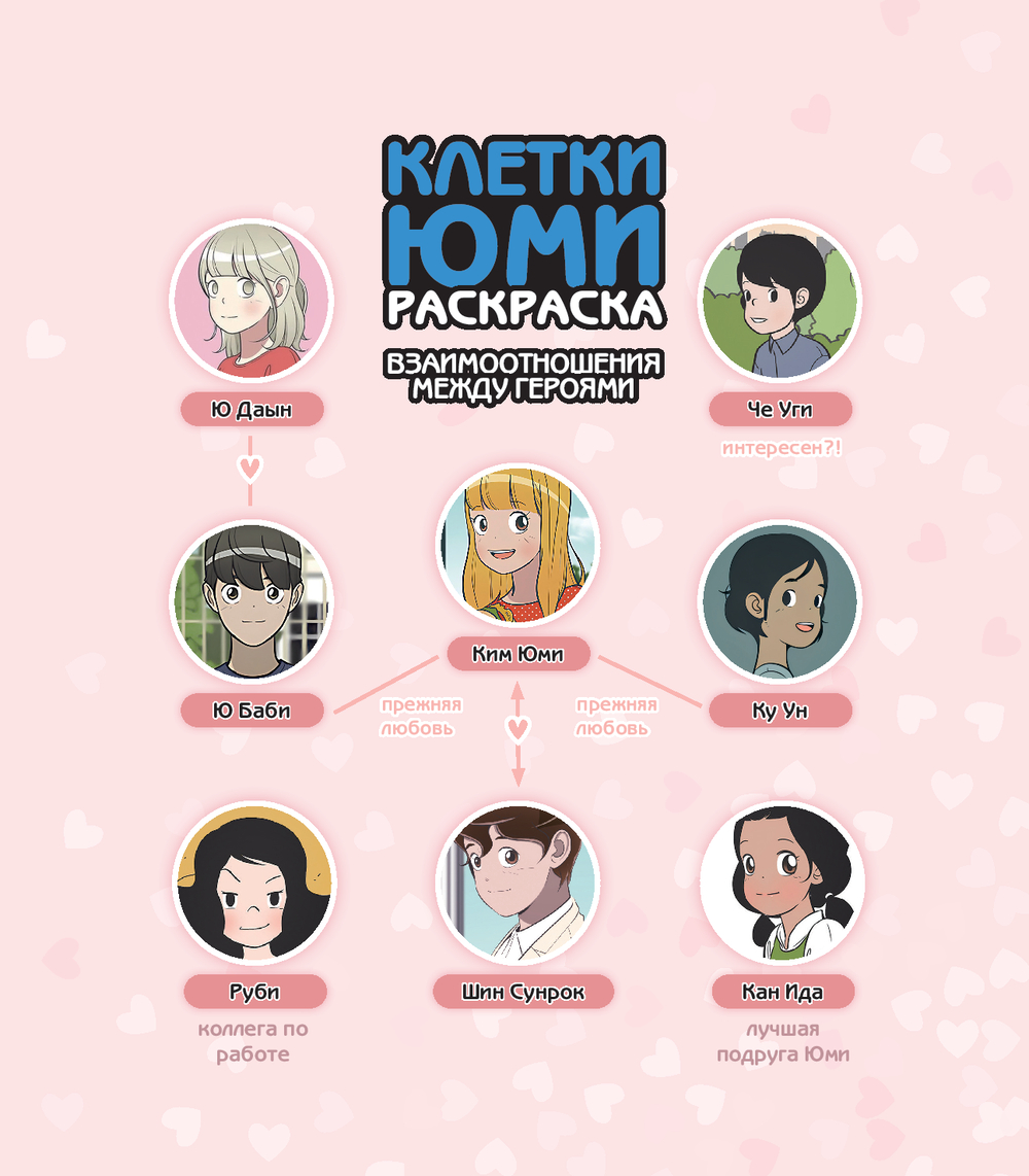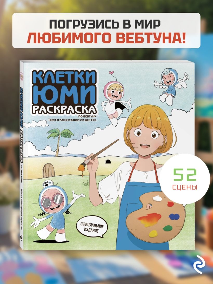 Встречай лучшие моменты вебтуна "Клетки Юми" в раскраске! Раскраска "Клетки Юми" включает 52 знаменитые сцены популярного вебтуна, который завоевал любовь читателей милой рисовкой и трогательной историей о любви, а также был адаптирован в сериал и фильм. Здесь можно раскрашивать не только главных героев Юми, Гу Уна, Баби и Сунрока, но и забавные клетки – любовную, разумную, голодную, модную и другие.
