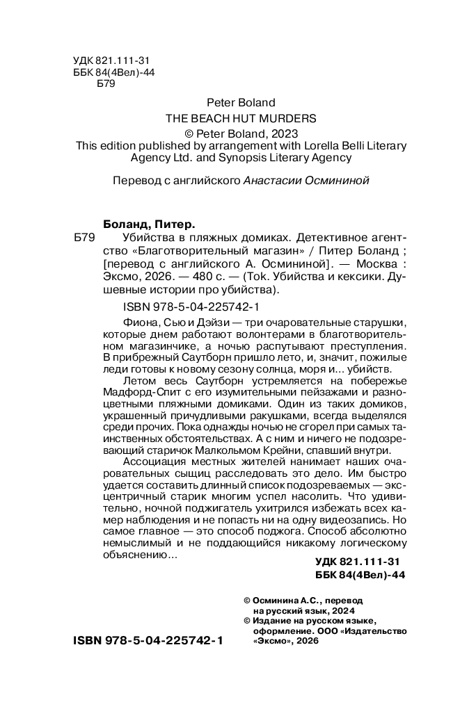 Фиона, Сью и Дэйзи – три очаровательные старушки, которые днем работают волонтерами в благотворительном магазинчике, а ночью распутывают преступления. В прибрежный Саутборн пришло лето, и, значит, пожилые леди готовы к новому сезону солнца, моря и... убийств.