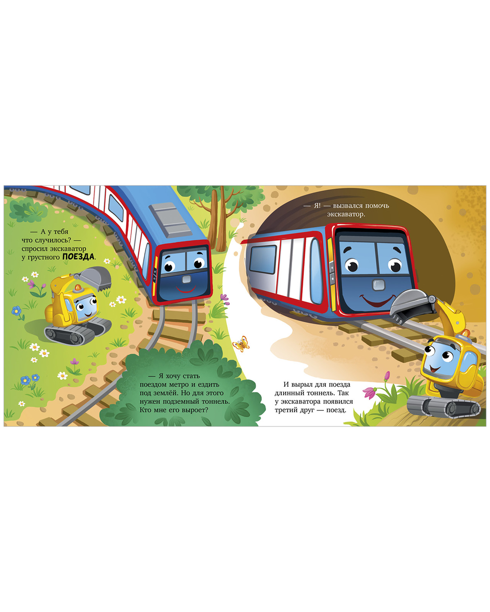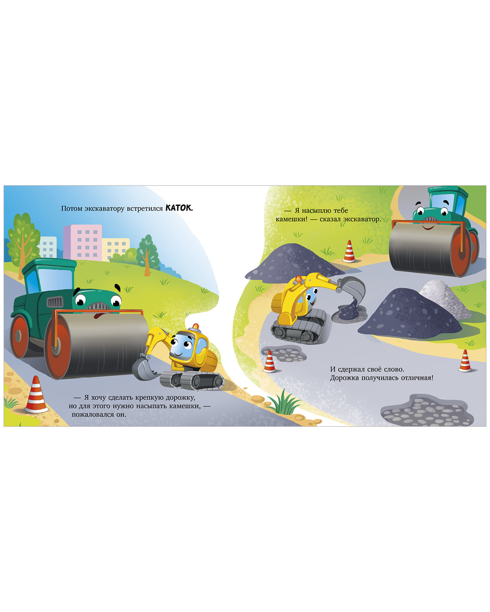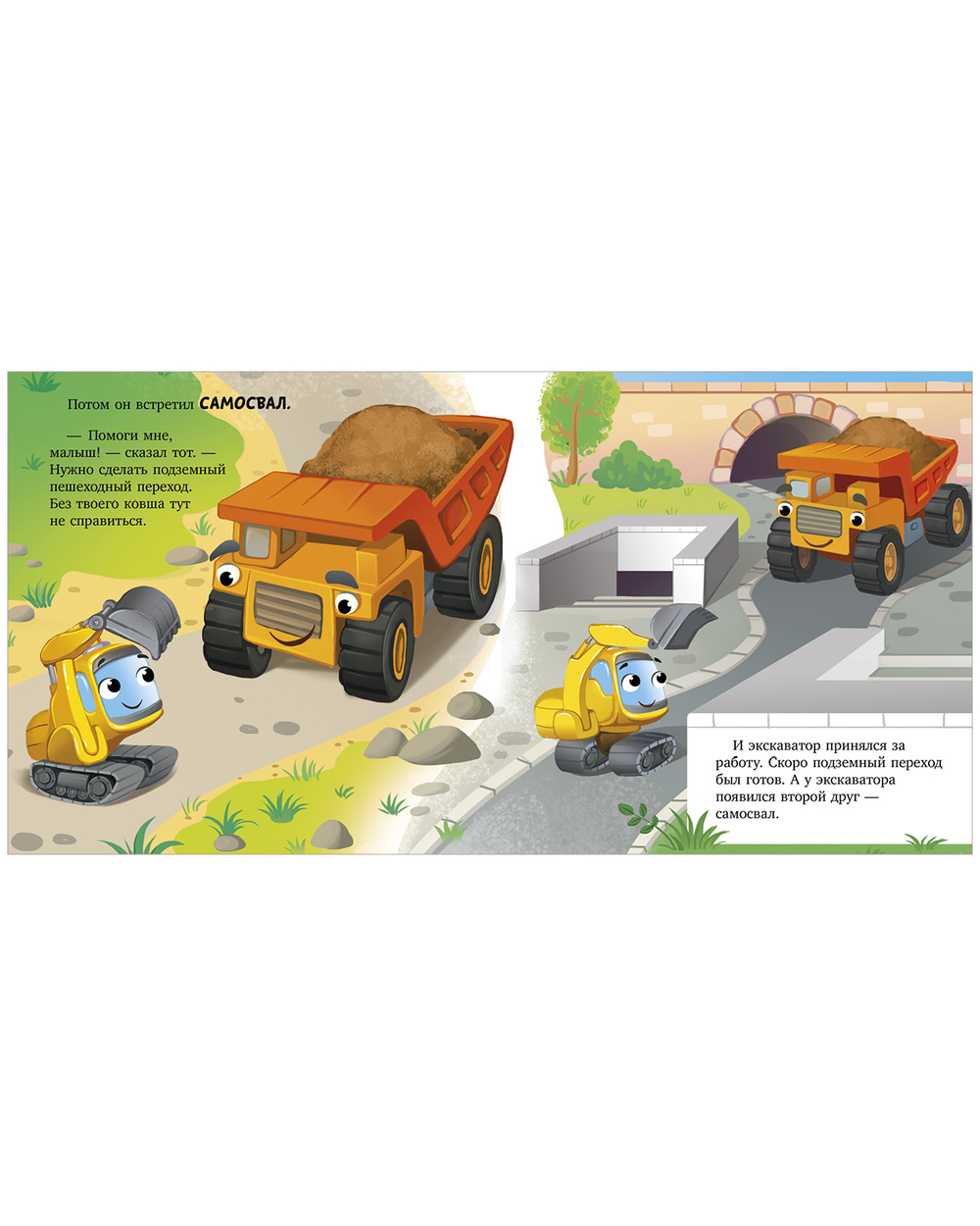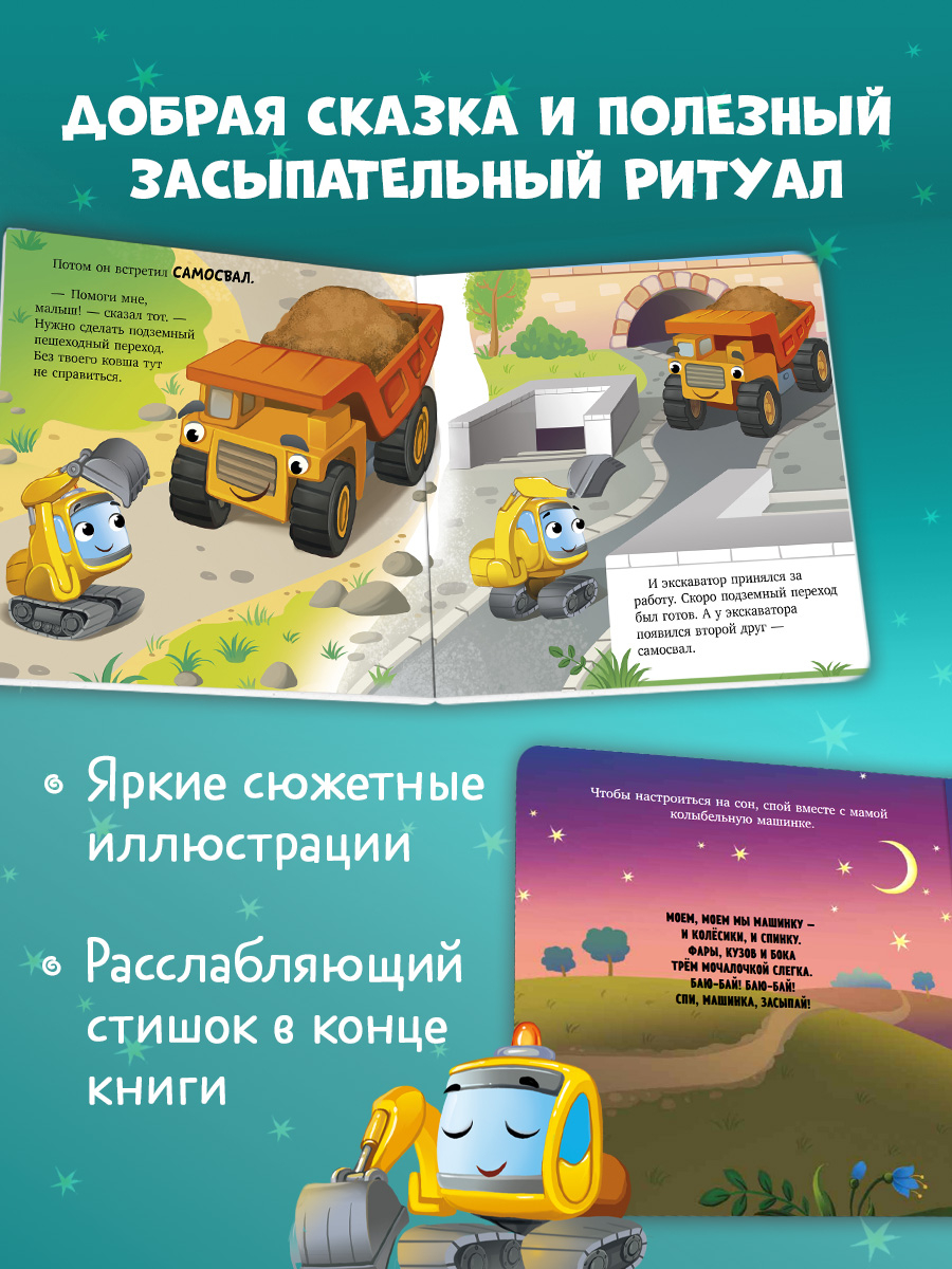 Экскаватор целый день помогал машинкам и завел много друзей. Но, когда он приехал в гараж, чтобы лечь спать, друзья его не пустили. Что малыш забыл сделать перед сном?