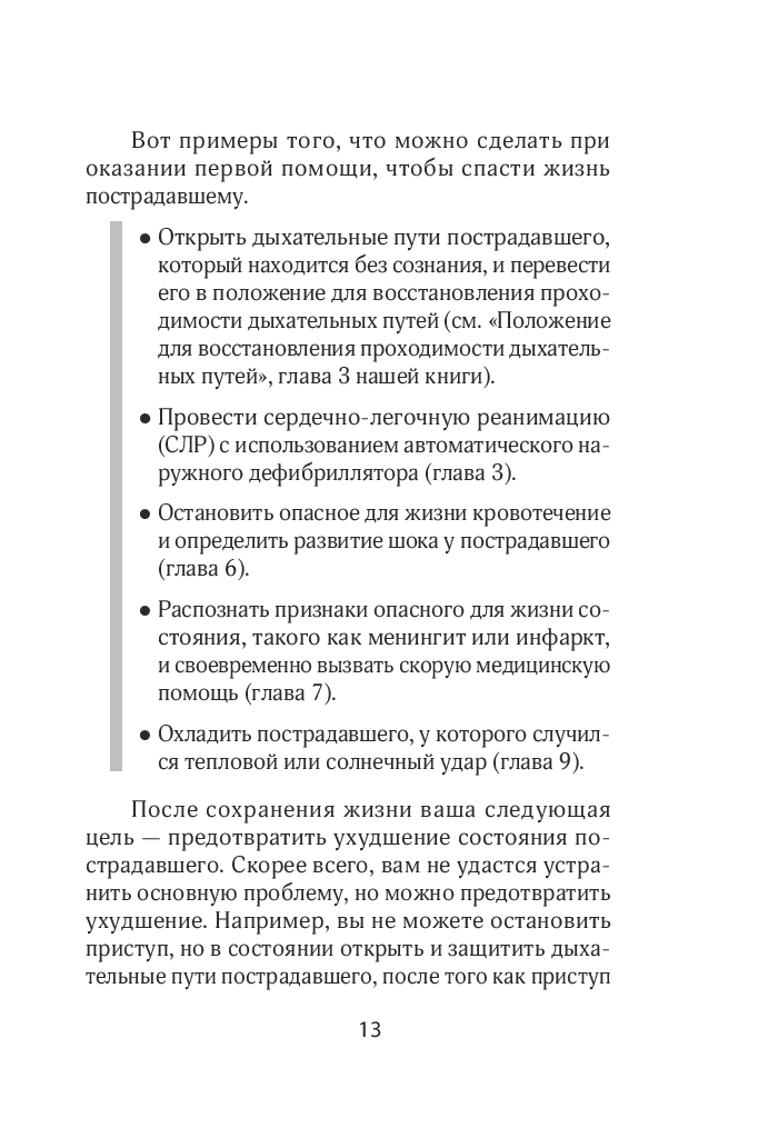 Об этих и других вопросах мы почти не задумываемся в обычной жизни. Но что делать, если экстренная ситуация потребует решительных действий? Это руководство поможет собрать воедино и структурировать знания, полученные из различных источников. А проверенные методики и рекомендации от ведущих специалистов в области оказания первой медицинской помощи дадут уверенность в правильности ваших действий.