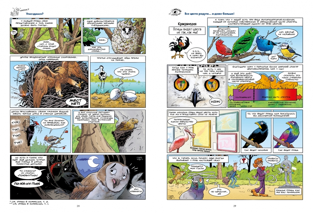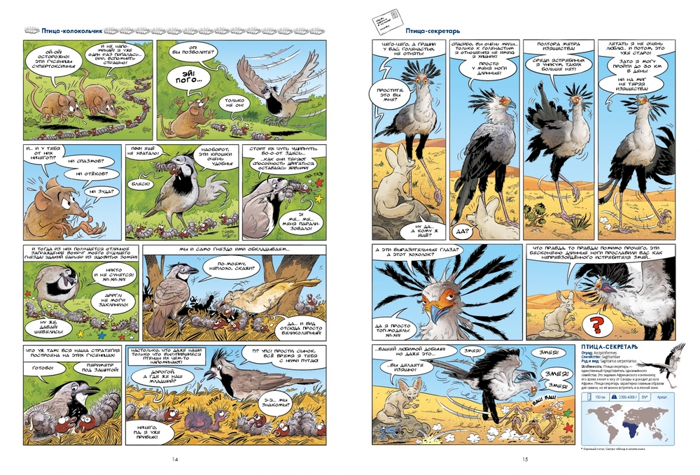 Казалось бы, после двух томов удивительных, а порой и вовсе невероятных историй про птиц, нас, читателей французской серии "Птицы в комиксах", уже ничем не проймёшь, однако её авторы Жан-Люк Гаррера и Ален Сирван не теряли времени зря и выпустили 3-й том, полный не менее любопытных фактов. Могли бы вы, к примеру, представить, что австралийская птица-колокольчик использует ядовитых гусениц в качестве защитного барьера от врагов?..