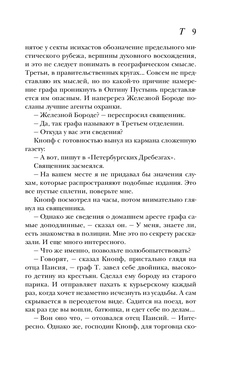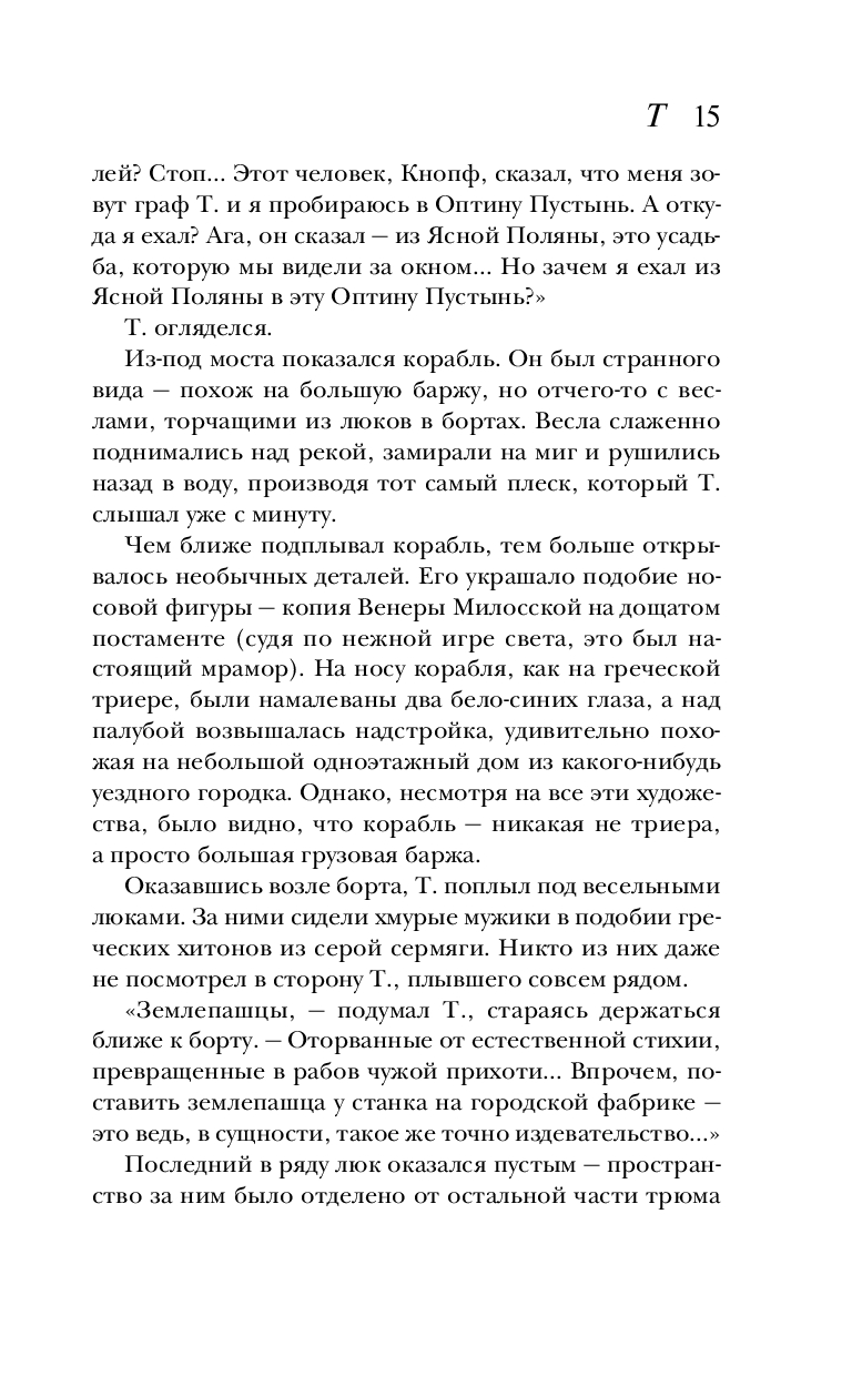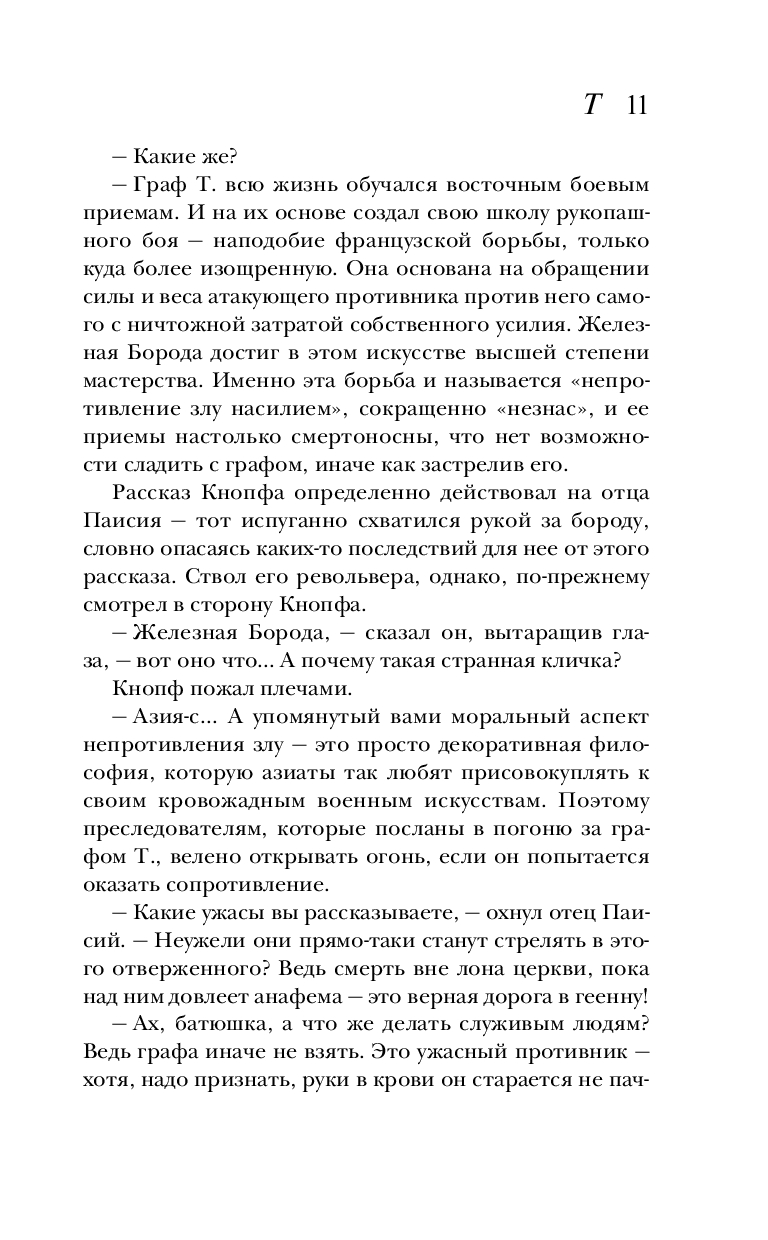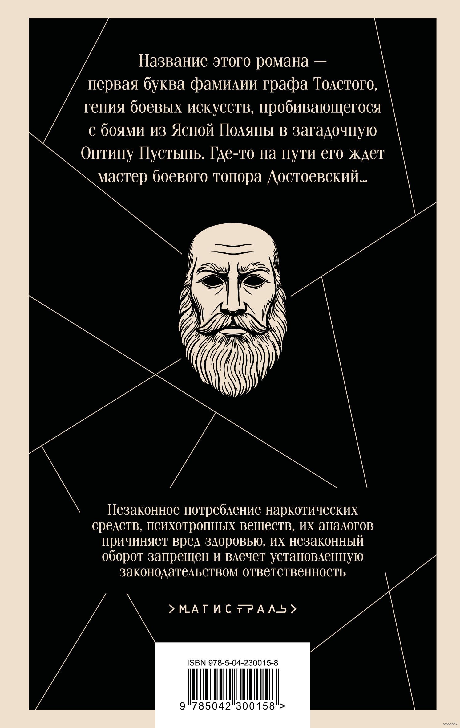 А еще это первая буква фамилии графа Толстого, гения боевых искусств, пробивающегося с боями из Ясной Поляны в загадочную Оптину Пустынь. Где-то на пути его ждет мастер боевого топора Достоевский…