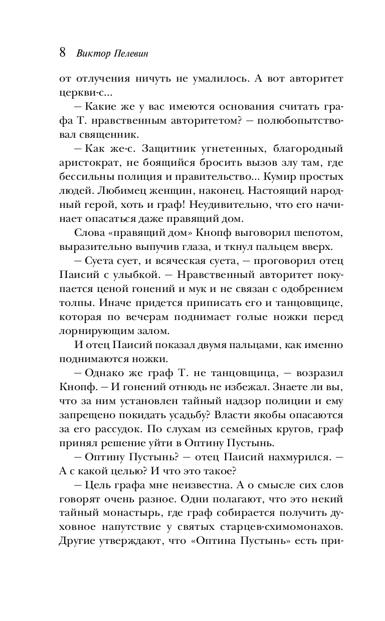 Виктор Пелевин – известный российский писатель-постмодернист. Роман "Т" занял первое место на премии "Большая книга" в номинации народное голосование. Многие произведения Пелевина переведены на другие языки и экранизированы.