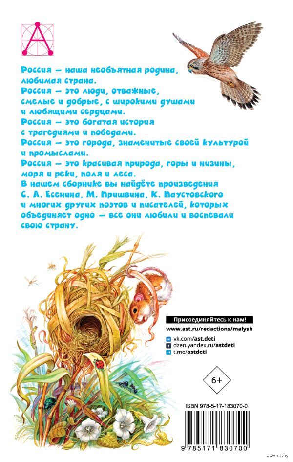 В книге вы найдёте стихотворения "Ты помнишь, Алёша, дороги Смоленщины…" К. Симонова, "Русь" С. А. Есенина, рассказы "Русский лес" И. Соколова-Микитова, "Зорькина песня" В. Астафьева и другие.