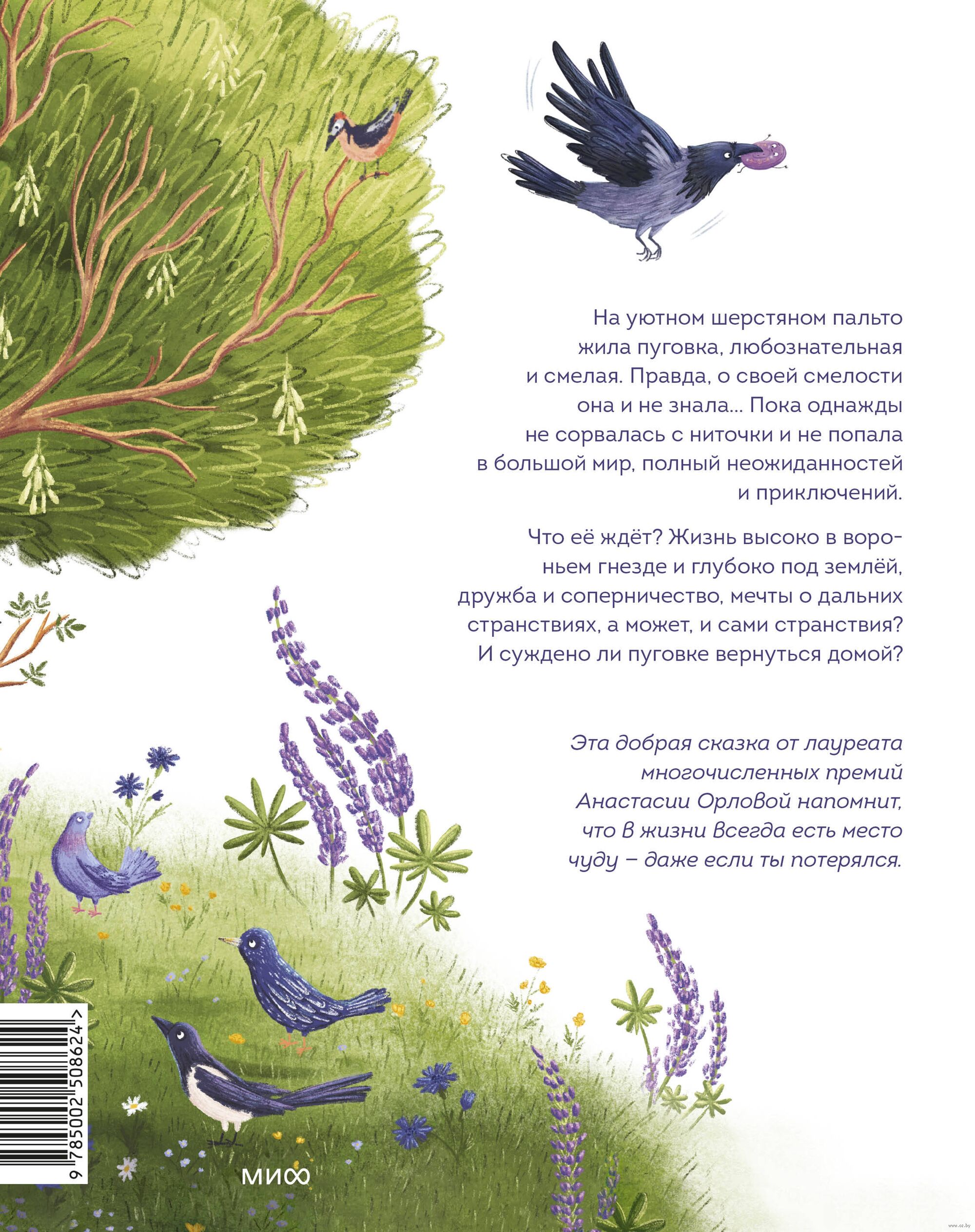 Так начинается удивительная история пуговки Лиллы, которая сорвалась с ниточки и попала в большой мир, полный неожиданностей и приключений. Что ее ждет? Жизнь в вороньем гнезде и мышиной норке, дружба и соперничество, мечты о дальних странствиях... и, конечно, возвращение домой к любимой хозяйке.