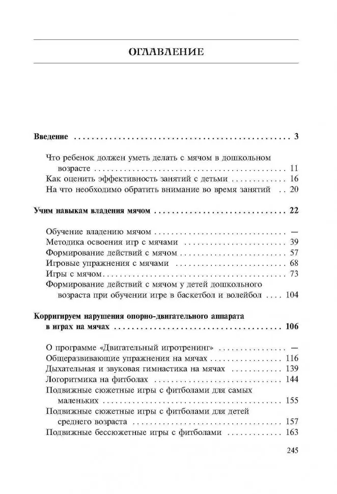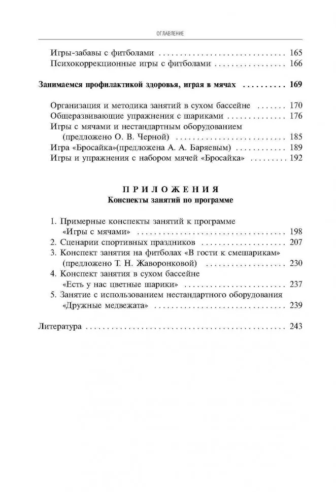 В пособии представлены три вида работы с мячом. Во-первых, включена программа для детей 5-7 лет "Игры с мячами", которая носит развивающий характер и описывает освоение действий с мячом и подготовку дошкольника к командным играм (баскетбол, волейбол и др.). Во-вторых, подвижные игры, логоритмические упражнения, звуковая гимнастика на больших мячах (фитболах) содержатся в программе "Двигательный игротренинг" для детей 4 лет. В-третьих, для самых маленьких детей будут интересны игры с мячами в сухом бассейне.