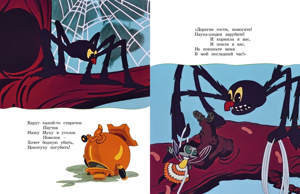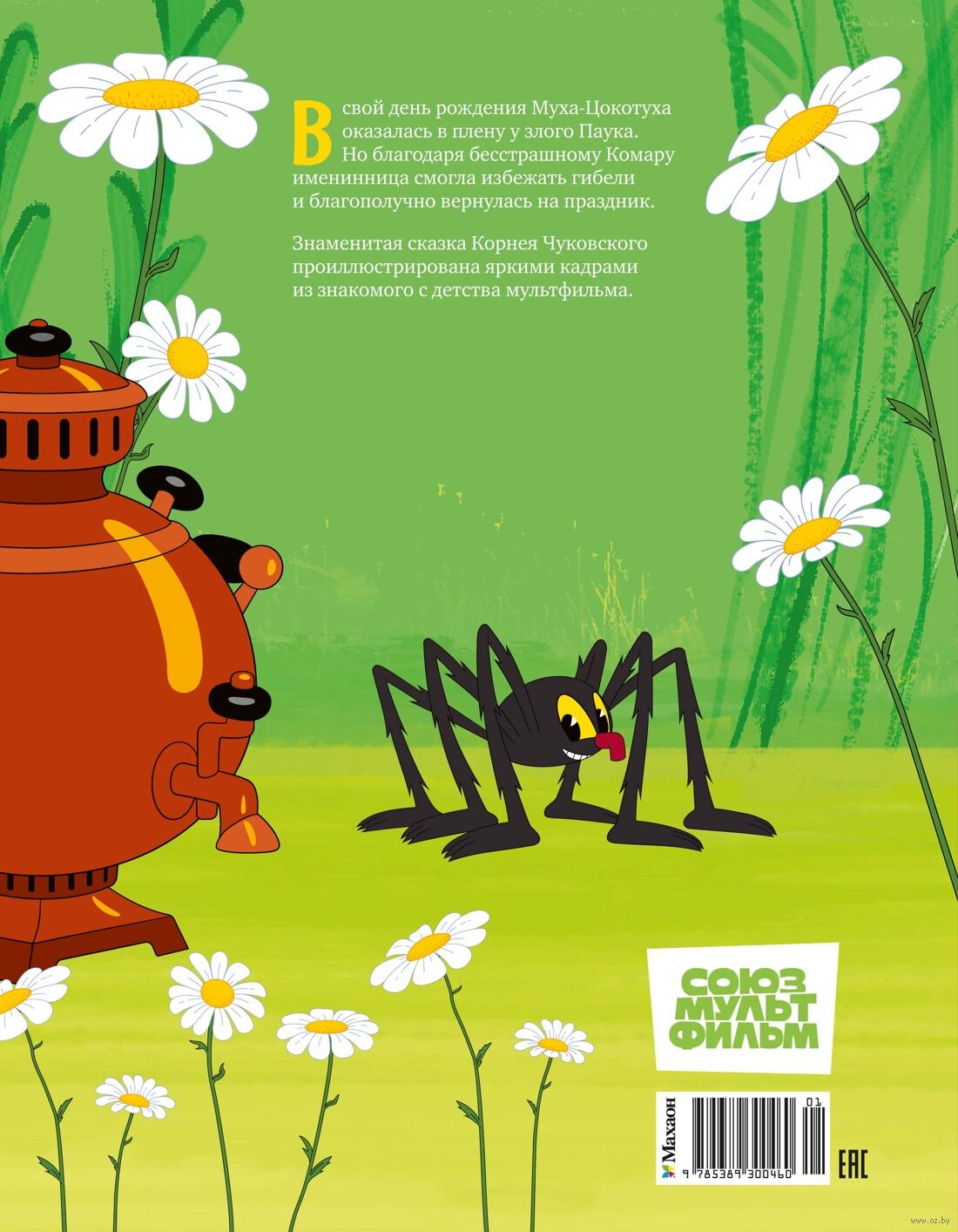 В свой собственный день рождения Муха-Цокотуха оказалась похищена злобным разбойником-пауком. Только благодаря бесстрашному герою-комару именинница смогла избежать гибели и благополучно вернулась на праздник. Всеми любимая сказка Корнея Чуковского проиллюстрирована яркими кадрами из знаменитого мультфильма. Яркие забавные иллюстрации сделают чтение ещё увлекательнее.