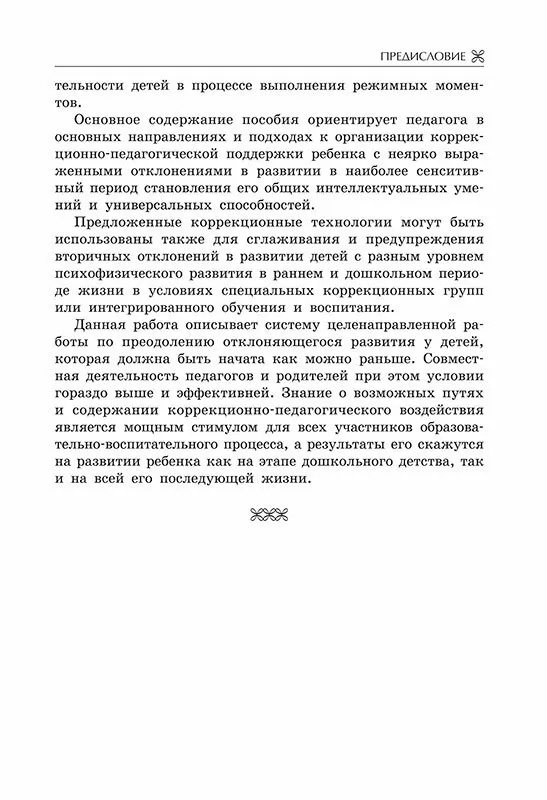 В пособии представлена система целенаправленной коррекционно-педагогической работы по преодолению и профилактике незначительных отклонений в развитии детей; рассмотрены основы обучения и воспитания детей раннего и дошкольного возраста с неярко выраженными отклонениями в развитии; описаны содержание, методы и приемы коррекционно-развивающей работы с детьми, направленной на здоровьесбережение детей, их социальное, физическое, познавательное, деятельностное и эстетическое развитие.