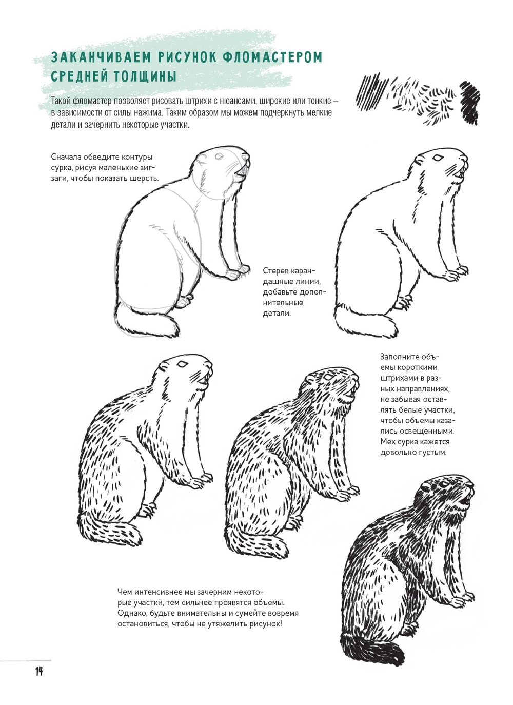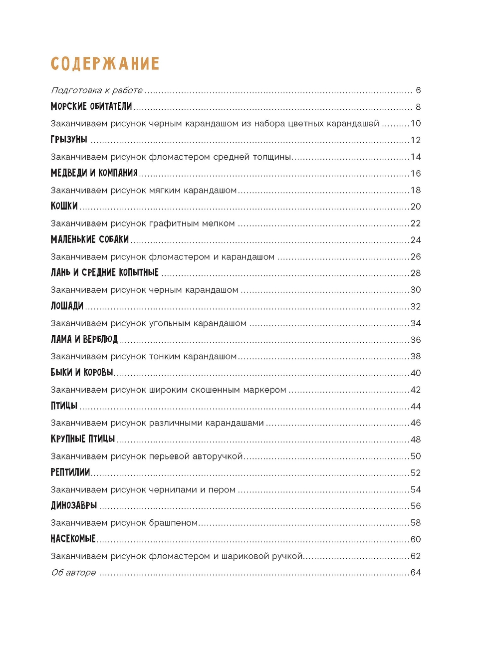 В этом скетчбуке вас ждут мастер-классы по рисованию животных, птиц и насекомых. Животный мир настолько разнообразен, что изображение каждого вида становится для начинающего художника истинным вызовом. Однако, если обратить внимание на несколько сходных характеристик: общий объем животного, сочленение суставов, как лапы или плавники крепятся к телу, – можно получить реалистичный рисунок, независимо от того, кого вы решите изобразить.