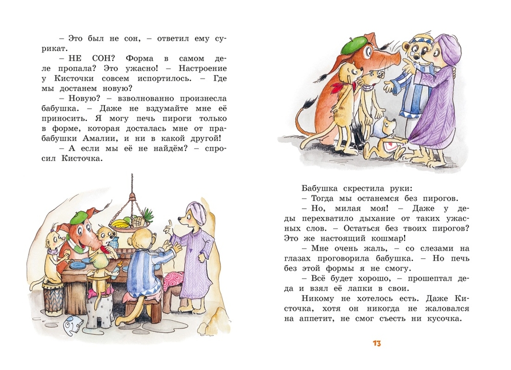 В норе сурикатов переполох. Кто-то украл бабушкину форму для пирогов. А неподалёку как раз недавно объявились очень подозрительные обезьяны. Деда уверен: это не просто совпадение. Придётся Тафити и Кисточке выследить грабителей, иначе семья может на веки вечные остаться без сладкого!