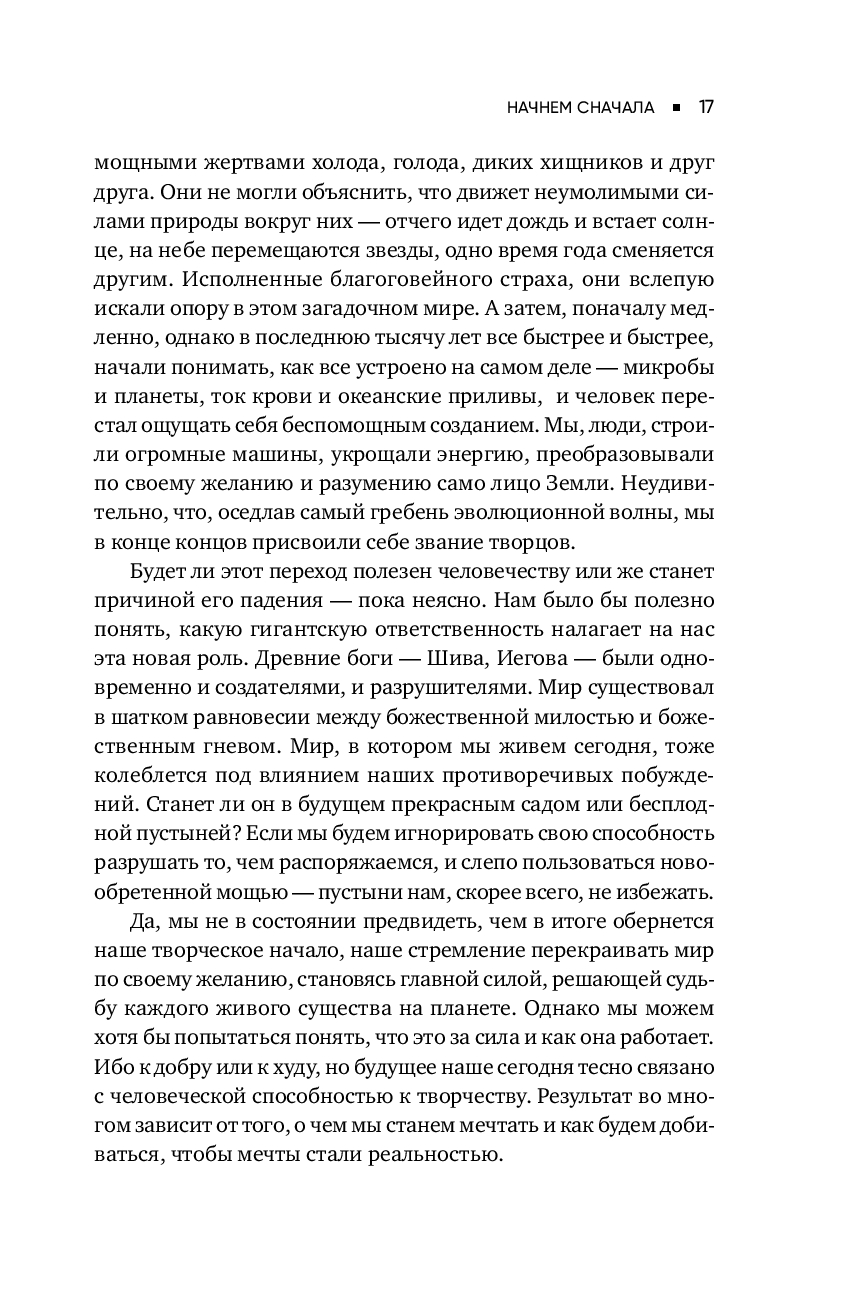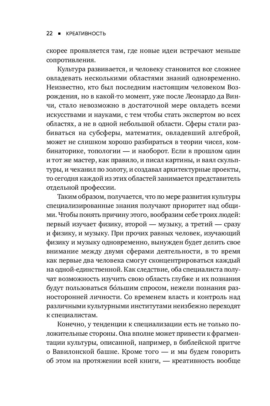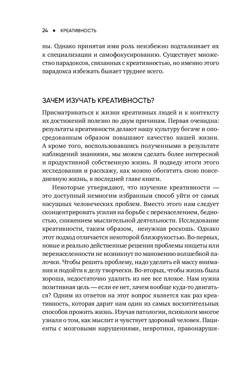 Творческий человек – что в нем особенного? И почему творчество делает жизнь насыщеннее и счастливее? Талантливые художники, музыканты, писатели, ученые, лидеры крупнейших корпораций – профессор Михай Чиксентмихайи исследовал судьбы 90 величайших людей ХХ столетия. Это исследование остается самым глубоким научным трудом, посвященным креативности, и оно развеивает множество расхожих стереотипов о том, что делает человека креативным и что стимулирует творческие порывы. Используя теорию потока, ученый показывает, что такое креативный процесс и почему креативность столь необходима человеку.