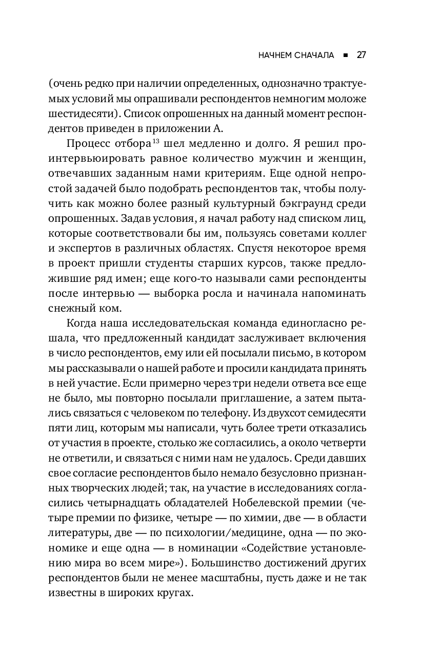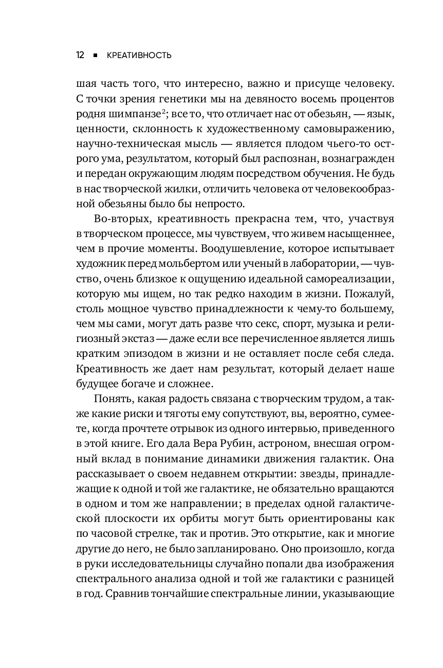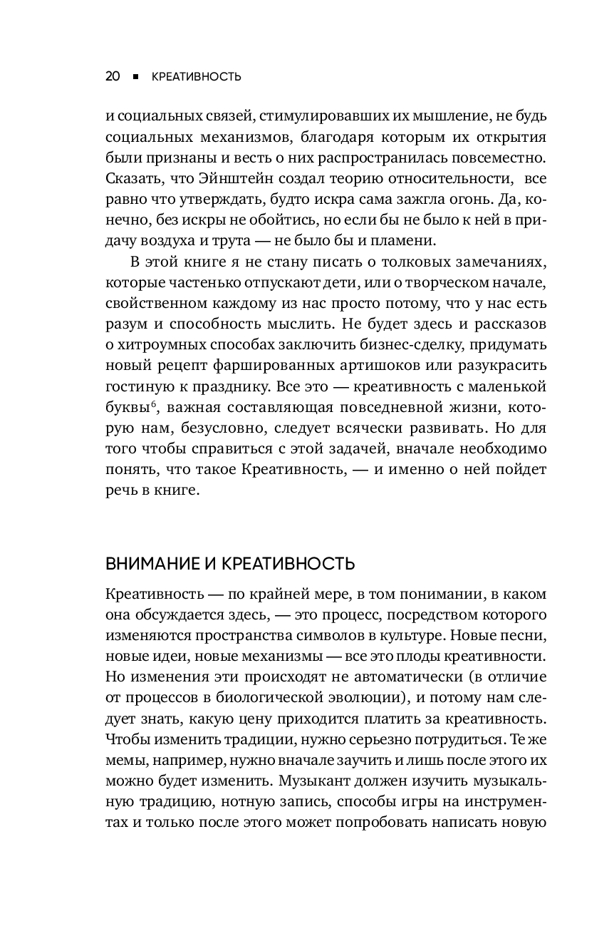 Творческий человек – что в нем особенного? И почему творчество делает жизнь насыщеннее и счастливее? Талантливые художники, музыканты, писатели, ученые, лидеры крупнейших корпораций – профессор Михай Чиксентмихайи исследовал судьбы 90 величайших людей ХХ столетия. Это исследование остается самым глубоким научным трудом, посвященным креативности, и оно развеивает множество расхожих стереотипов о том, что делает человека креативным и что стимулирует творческие порывы. Используя теорию потока, ученый показывает, что такое креативный процесс и почему креативность столь необходима человеку.