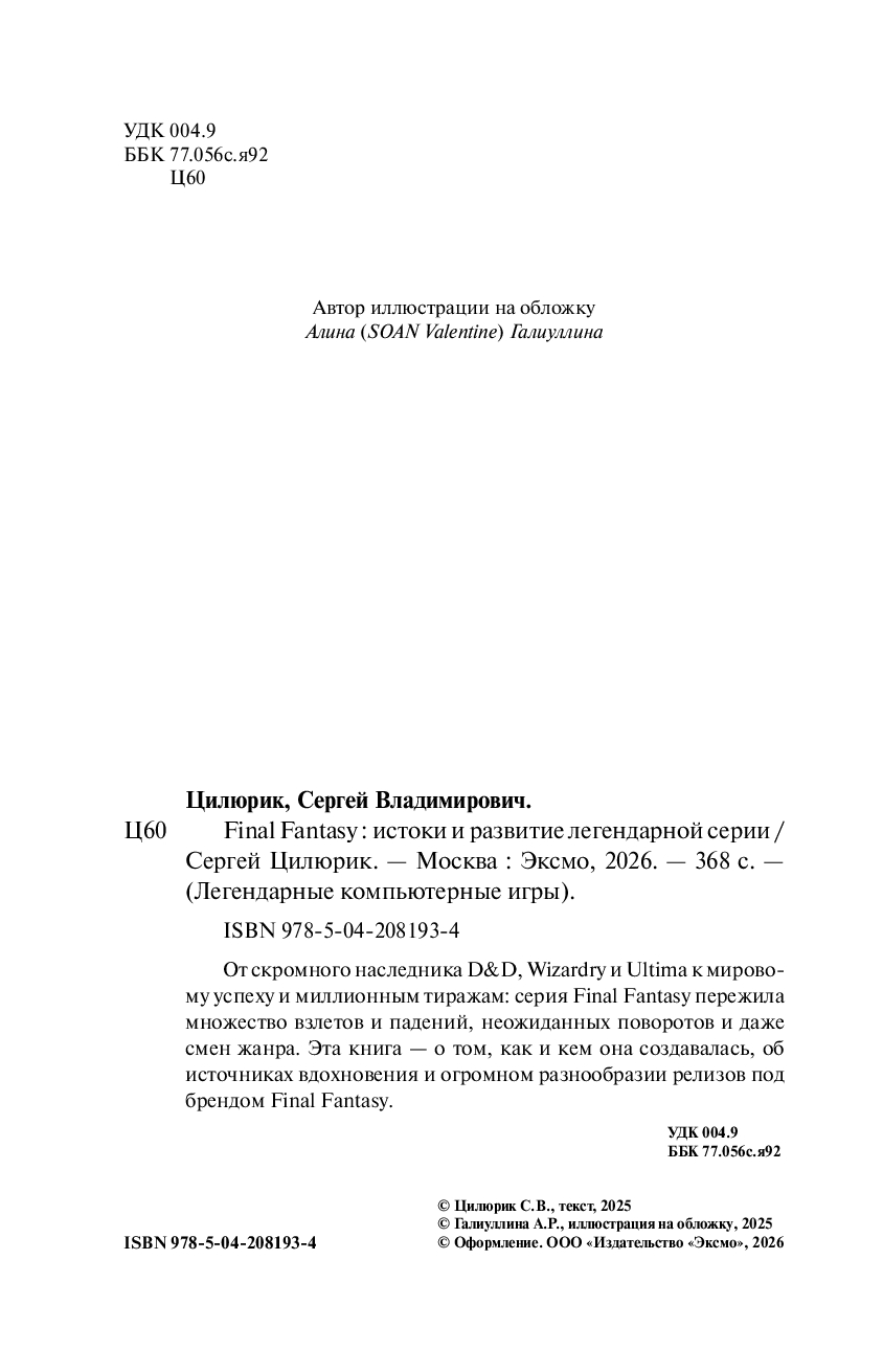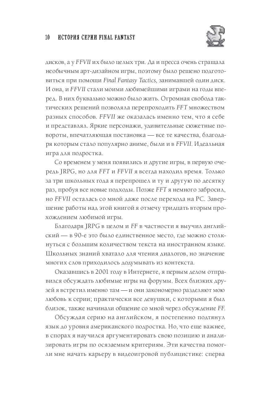 От скромного наследника D&D, Wizardry и Ultima к мировому успеху и миллионным тиражам: серия Final Fantasy пережила множество взлетов и падений, неожиданных поворотов и даже смен жанра. Эта книга – о том, как и кем она создавалась, об источниках вдохновения и огромном разнообразии релизов под брендом Final Fantasy.