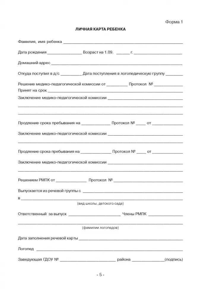 Речевая карта для обследования ребёнка дошкольного возраста с общим недоразвитием речи