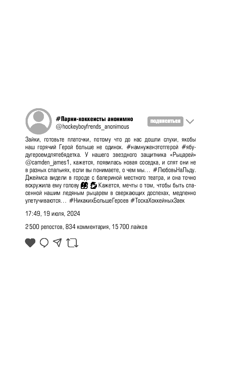 Что общего может быть у простой балерины, которая еле сводит концы с концами, и хоккеиста-миллионера? Мы абсолютно точно из разных миров! Однако, внезапно оказавшись на улице, я понимаю: мне все же придется принять его помощь. Я переезжаю в шикарный дом Кэмдена, и теперь делю быт с горячим хоккеистом-суперзвездой.