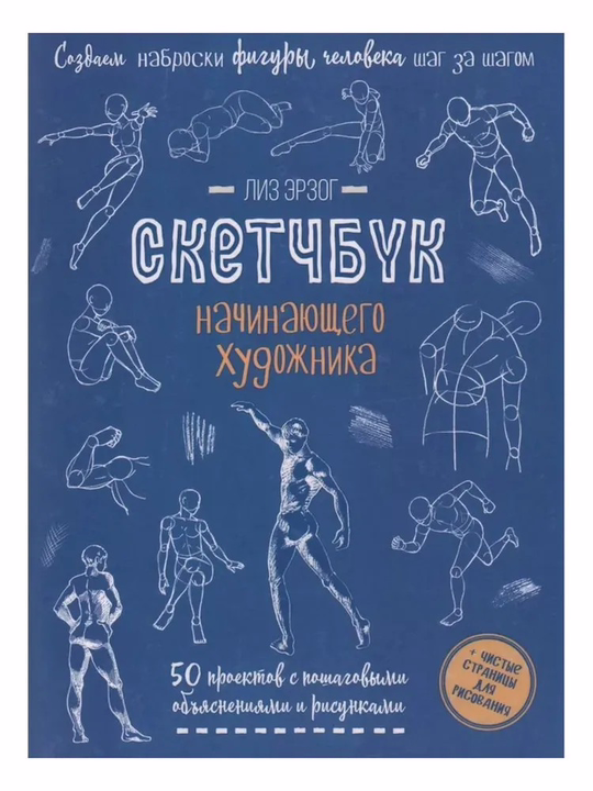 Серия "Скетчбук начинающего художника" от известного иллюстратора Лиз Эрзог воплотила в себе все достоинства современных учебников по рисованию: простоту, наглядность, возможность начать практиковаться прямо на страницах пособия, а также, что немаловажно, компактность и бюджетность.