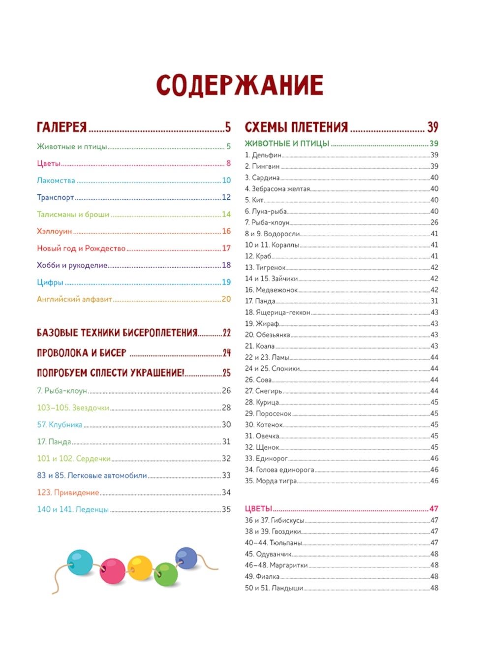 Подробные инструкции с пошаговыми описаниями для выборочных моделей и схемы плетения для каждого проекта позволят вам выполнить все фигурки легко и быстро. Изучите базовые техники, приведенные в начале книги, а затем приступайте к созданию собственных подвесок. Желаем вам яркого калейдоскопа бисерных эмоций!