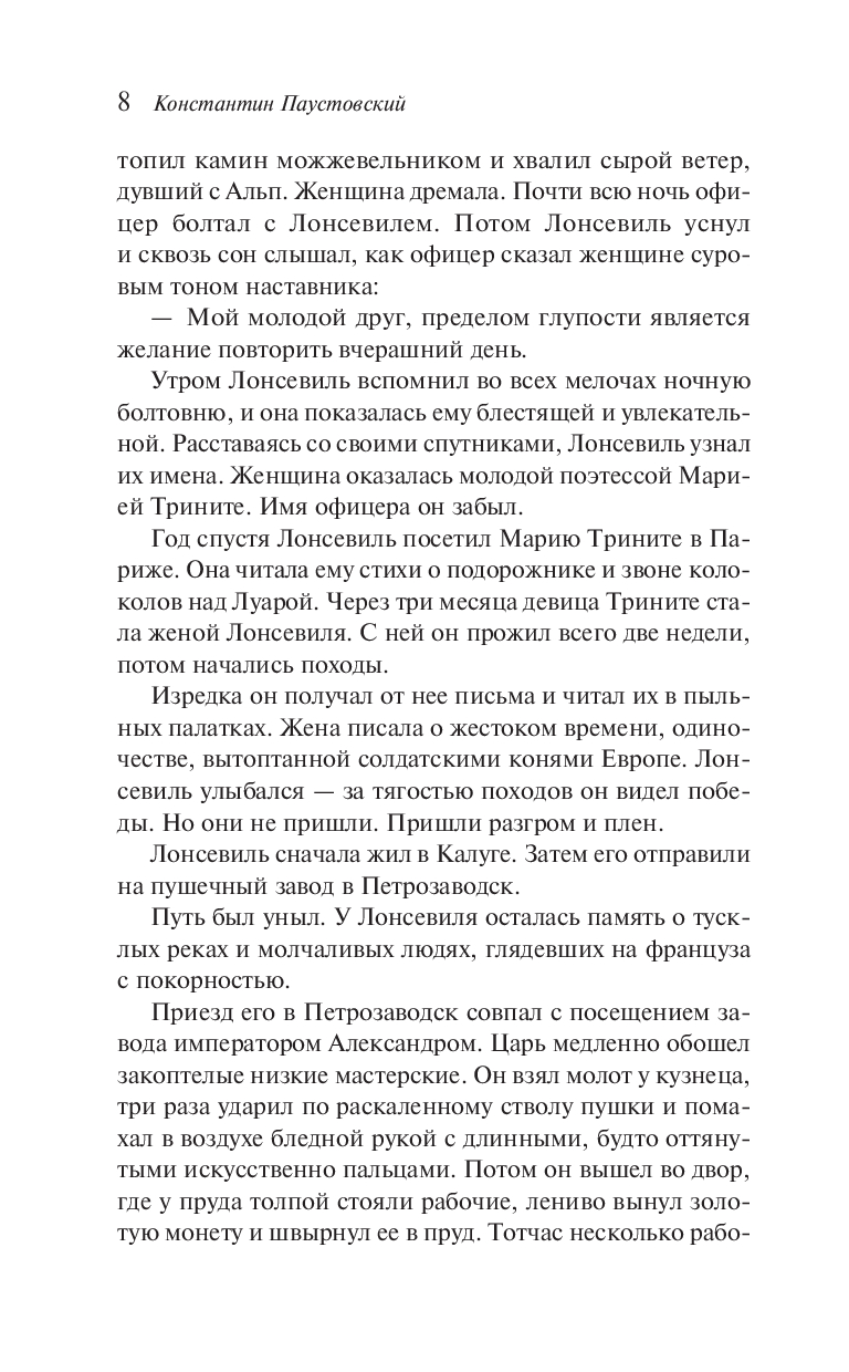 В сборник вошли и другие повести Константина Паустовского (1892-1968): "Судьба Шарля Лонсевиля", "Озерный фронт", "Орест Кипренский", "Исаак Левитан", "Мещёрская сторона", "Тарас Шевченко", "Разливы рек".