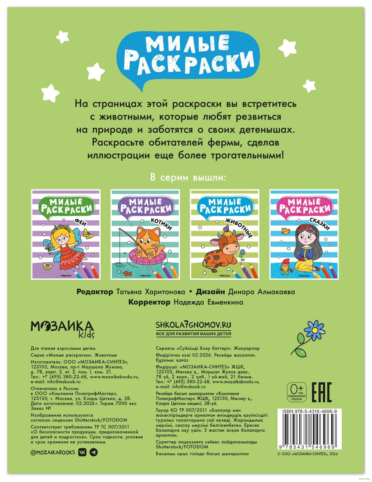 На страницах этой книги ребенок встретится с обитателями фермы и их детёнышами. Раскрашивая крупные изображения с четкими контурами, ребенок сможет потренировать мелкую моторику и внимание, а также проявить фантазию и придумать трогательные истории с участием героев.