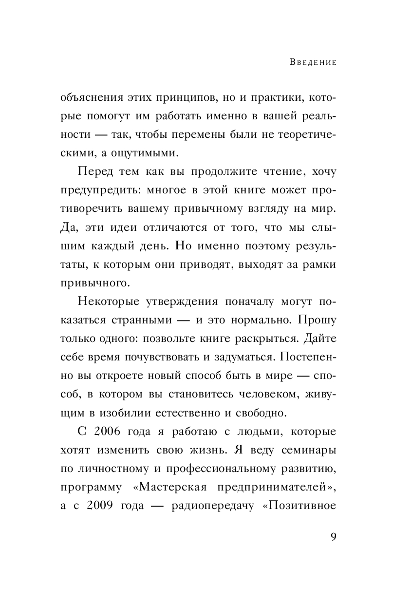 Это не просто книга. Это приглашение выйти за пределы привычной реальности. Открыть для себя пространство ИЗОБИЛИЯ. Понять, как установки дефицита создают вокруг нас иллюзию ограничений. А ведь эта иллюзия исчезает, когда мы начинаем мыслить шире.