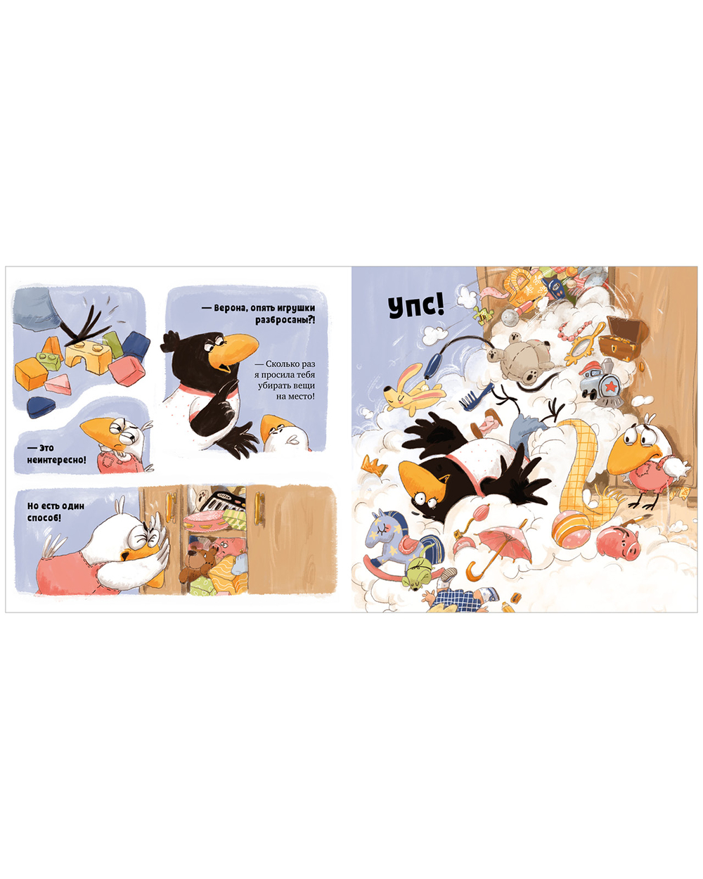 "Белая ворона Верона. Мамина помощница" – смешная история, в которой родители легко узнают своего маленького помощника и непоседу. Эта книжка – отличный повод поговорить с ребенком про домашние дела и вместе превратить их в игру!