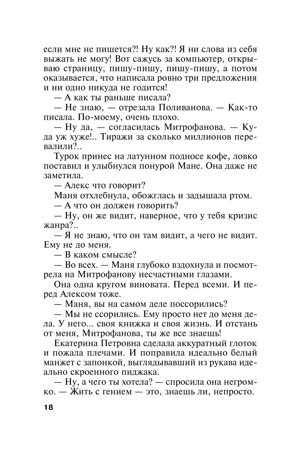 Писатель Алекс Шан-Гирей решает, что должен снова вернуть себя и обрести свободу. И потому расстается с Маней Поливановой – женщиной всей своей жизни, а по совместительству автором популярных детективов… А Маня совершенно не выносит вранья и человеческих мучений. И если уж Алекс почему-то решил "освободиться" – пожалуйста! Ей нужно спасать Владимира Берегового – главу IT-отдела издательства "Алфавит" – который попадает в почти мистическую историю с исчезнувшим трупом…