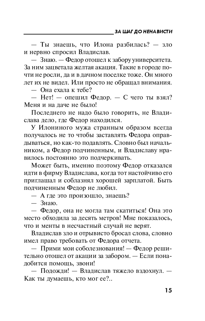В дачном поселке во время велопрогулки погибает молодая красавица Илона. Полиция сомневается, что ее крайне неудачное падение в овраг – несчастный случай, и сразу несколько друзей и близких Илоны оказываются под подозрением. Ее бывший муж Владислав был заинтересован в устранении экс-супруги, потому что та имела на него компромат. Подруга Вера могла желать отомстить за собственное увечье: два года назад она так же упала в овраг по вине Илоны. Есть и другие люди, желавшие смерти девушке, но кто из них действительно виновен в ее трагической гибели? Не доверяя друг другу и стараясь обелить себя, подозреваемые вынуждены вместе вести расследование...