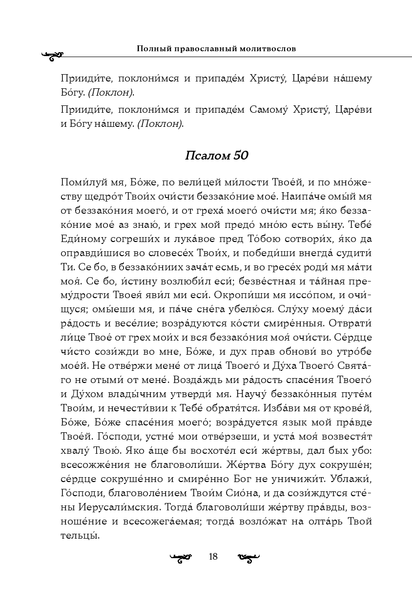 Полный православный молитвослов – настольная книга каждого верующего, сопровождающая его в буднях и праздниках, в радости и скорби. В ней собрано всё необходимое для личного молитвенного правила: утренние и вечерние молитвы, покаянные каноны, последование ко Святому Причащению, благодарственные молитвы и прошения на разные случаи жизни.
