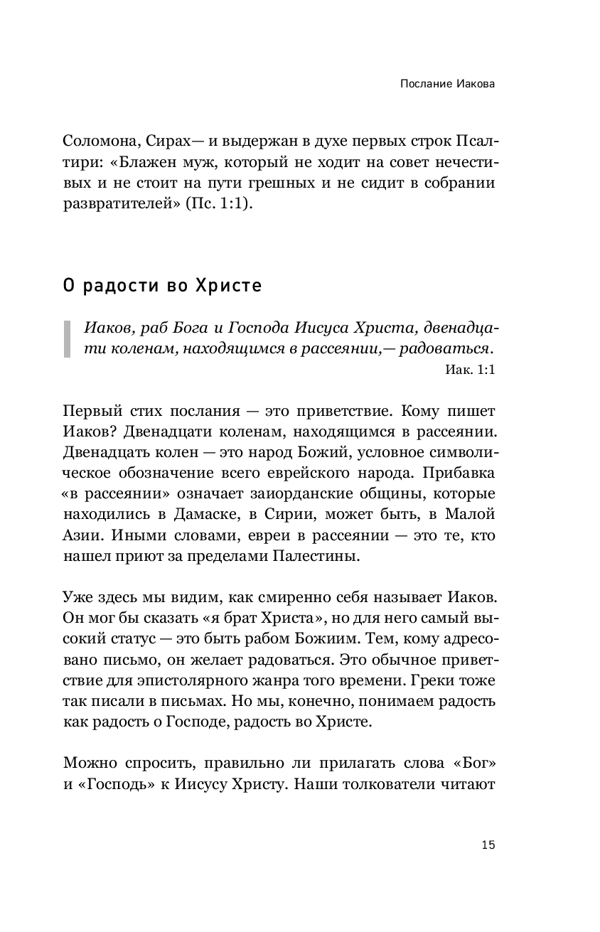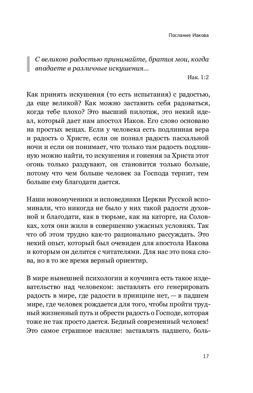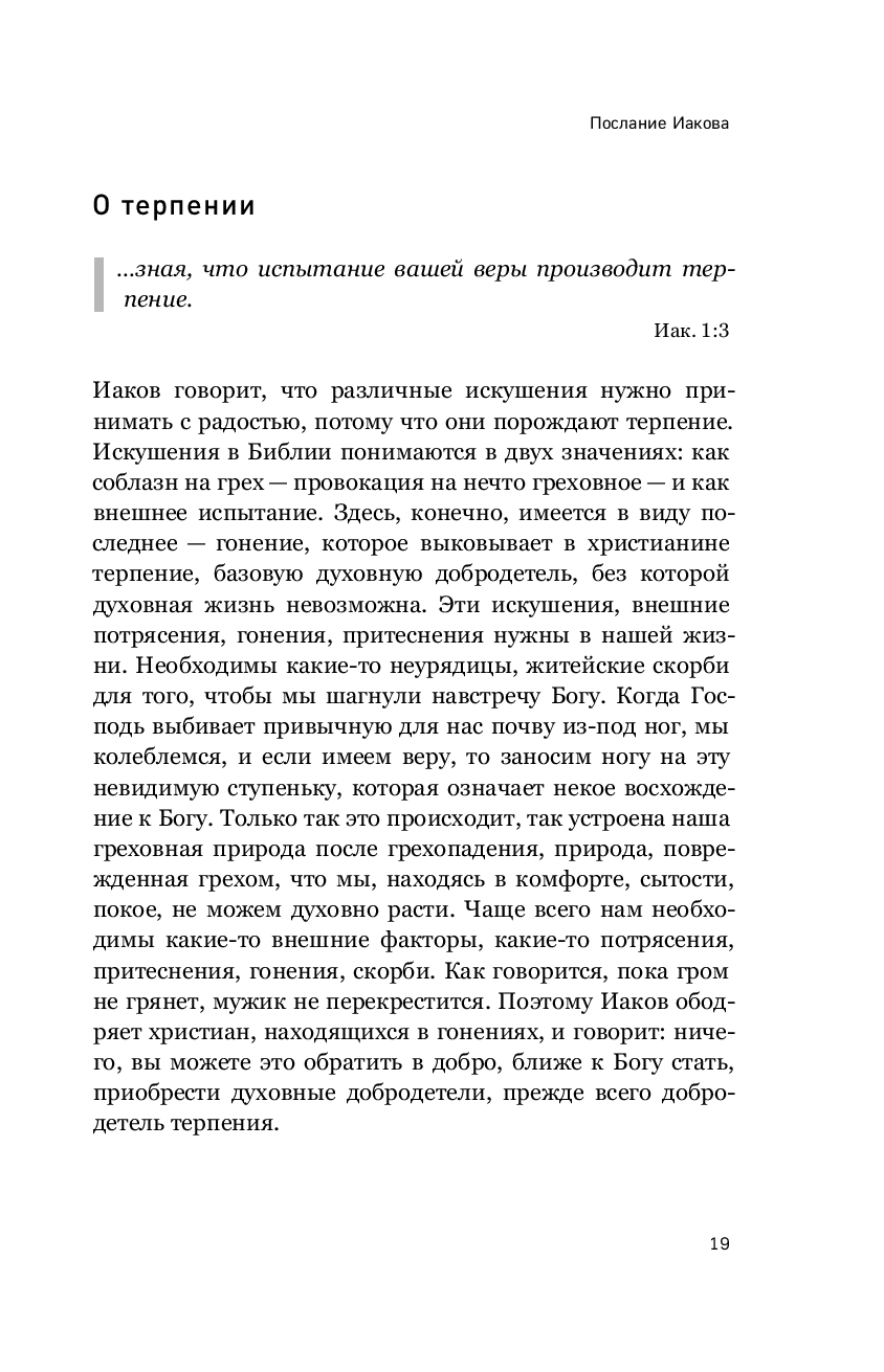Семь посланий Нового Завета, именуемых "соборные" – послание апостола Иакова, два послания апостола Петра, три послания апостола Иоанна, послание Иуды – являются неотьемлемой частью Библии. Они оказали значительное влияние на развитие христианского богословия. Однако эти тексты, ежедневно по зачалам читаемые в Церкви, остаются малопонятными даже для воцерковленных христиан. Книга Сергея Комарова на высоком уровне говорит об особенностях каждого из семи соборных посланий, раскрывает их богословскую и нравственную проблематику, и находит в них темы, актуальные для современных людей. Она написана живым и доступным языком, понятным для широкой читательской аудитории. Сергею Комарову удается сочетать популярную манеру изложения с содержательной глубиной, в том числе, благодаря обращению к толкованиям святых отцов Православной Церкви.